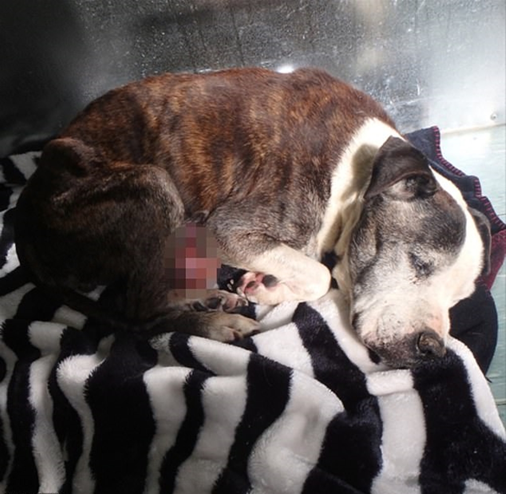 이들은 베니(Benny)라는 이름의 스태포드셔불테리어를 한 마리 키우고 있었습니다. 베니는 누가 봐도 눈에 띄게 아픈 상태였습니다. 잘 먹지 못해 척추와 늑골이 보일 정도로 저체중 상태였고, 무엇보다 음경이 부풀어올라 오렌지만큼 커져있는 상태였죠.