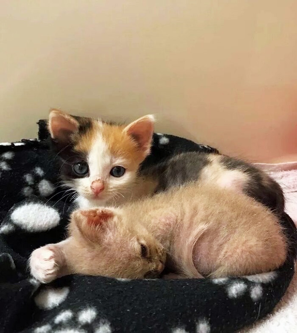 고양이의 상태는 한 눈에 봐도 그리 좋지 않았습니다. 온몸은 벼룩과 구충으로 덮여있었고 영양이 부족해 완전히 수척한 상태였죠. 또한 아기 고양이들은 배가 고파 서로의 털을 뜯어먹었던 것으로 보이는데요. 이에 털도 모자란 상태였습니다. 너무 말라서 척추와 뼈가 다 보이는 상황이었으며 몸무게는 300그램 미만이었습니다. 이는 정상 체중의 절반 정도에 불과했죠. 자신의 형제자매들처럼 이 고양이도 생존 가능성은 크지 않았죠.