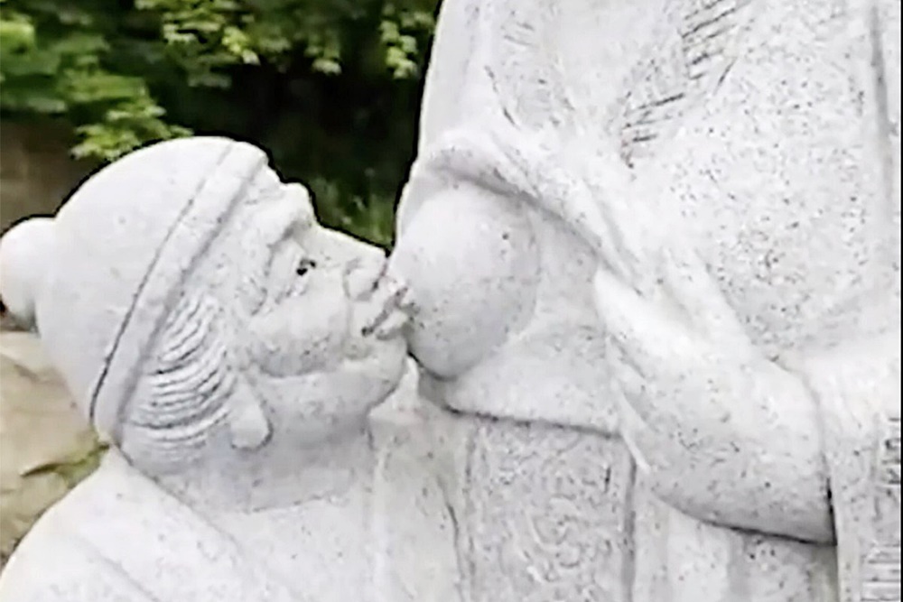 그러나 얼마 전 중국에서는 효와 관련된 옛 이야기를 동상으로 구현하며 큰 논란이 되고 있습니다. 바로 저장성 후저우에 위치한 잉판산 공원이었습니다. 이 동상은 충격적인 비주얼로 많은 관광객들과 현지인, 그리고 네티즌들의 경악을 자아냈는데요. 바로 며느리가 시어머니에게 젖을 먹이는 형상이었습니다.