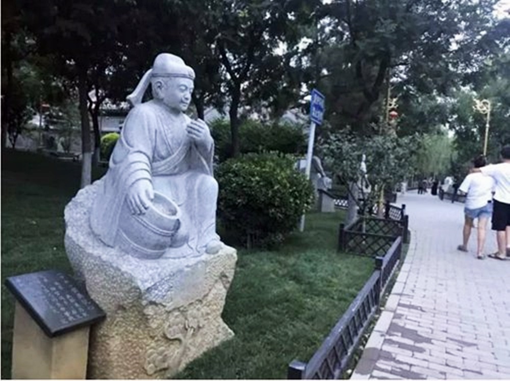 이 동상은 원나라 때 곽거경이 쓴 책 '이십사효'에 나오는 내용을 토대로 만들어진 것인데요. 이 책은 사람들에게 효 사상을 가르치기 위해 24명의 효자에 대해 쓴 것입니다. 그리고 그중의 하나는 시어머니에게 젖을 먹이는 며느리에 관한 것이었습니다. 이 며느리는 당나라 때의 이야기인데요. 가정 형편이 어려운 집안의 시어머니가 노령으로 치아가 모두 없어지자 며느리가 매일 시어머니의 건강을 위해 젖을 먹인다는 내용이었습니다.