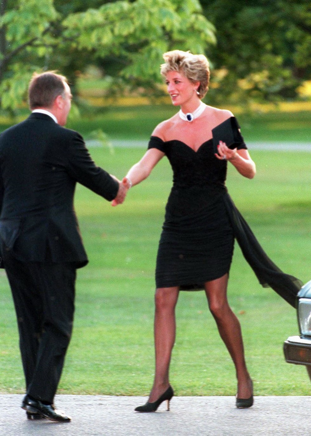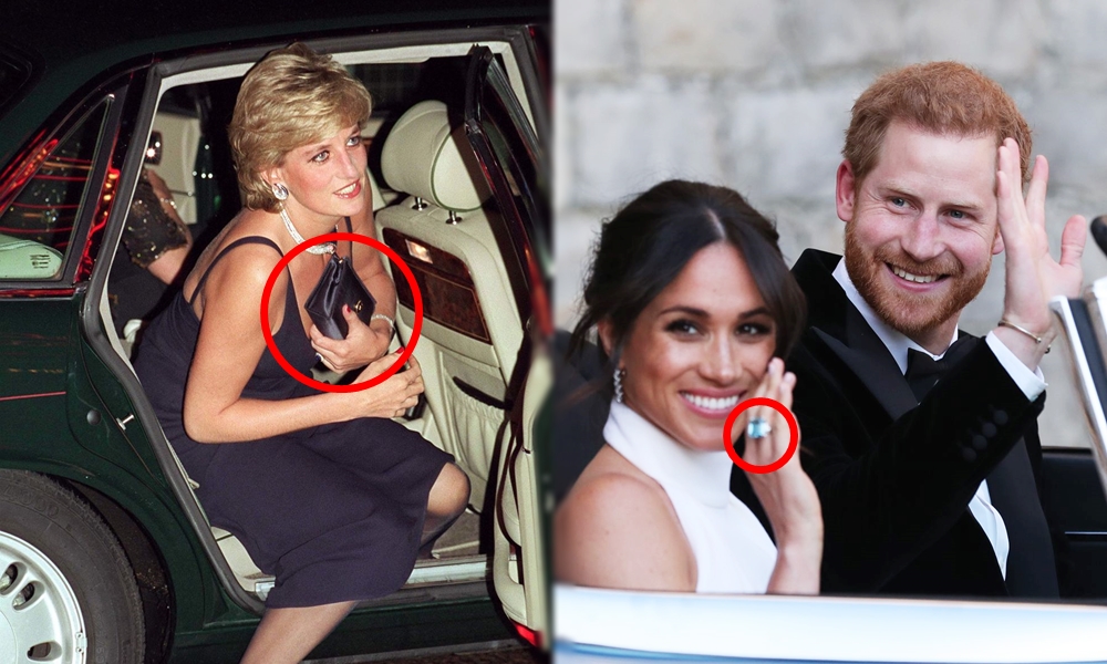 고 다이애나비는 세계에서 가장 사진이 많이 찍힌 여성 중의 하나입니다. 그리고 그녀는 언론과 카메라로부터 자신을 보호하는 방법을 알고 있었쬬. 그는 네크라인이 과감하게 파진 옷을 입고 차에서 내릴 때면 항상 클러치로 가슴을 가렸습니다.