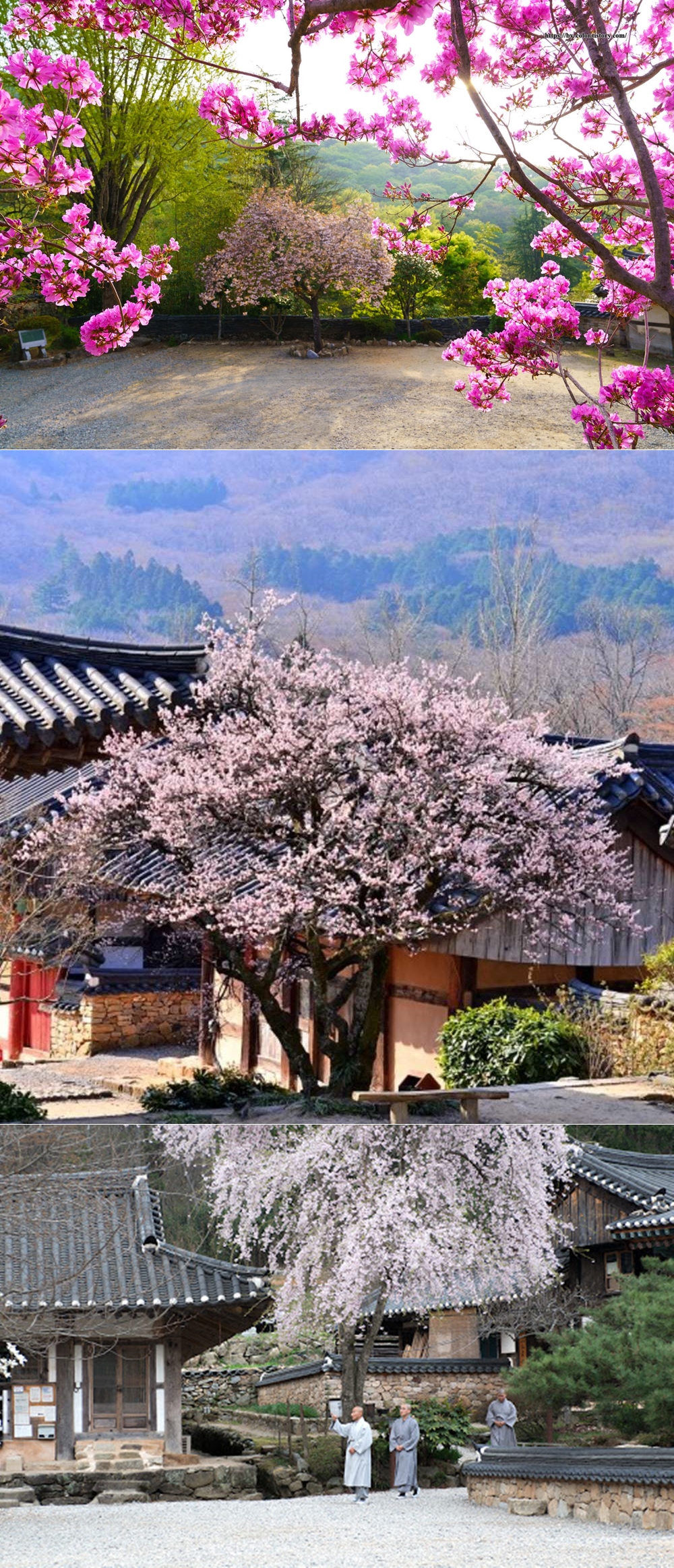 고즈넉한 사찰의 경내 분위기와 화려한 겹벚꽃이 만나 독특한 분위기를 자아내고 있는 이곳. 바로 순천 선암사입니다. 선암사 곳곳에는 겹벚꽃나무가 식재되어 있습니다. 선암사의 목재 건물과 진분홍색의 겹벚꽃나무를 보고 있자니 마치 드라마의 한 장면 같은 느낌이네요.