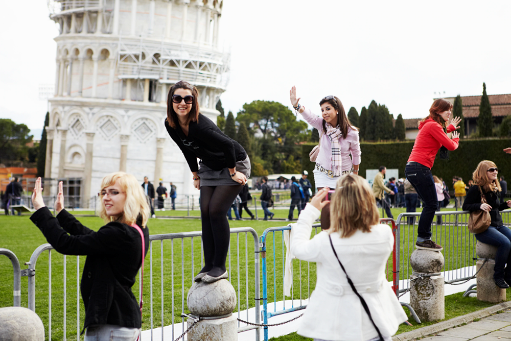 피사의 사탑은 피사 대성당에 부속된 종탑입니다. 그러나 기울어진 모양으로 인해 피사 대성당보다 훨씬 유명해진 건물이죠. 피사의 사탑 역시 막상 가보면 실망하는 사람들이 많이 있습니다. 피렌체에서 기차로 한두 시간 정도 걸리는 작은 마을에 '피사의 사탑'을 제외하고는 아무것도 없기 때문입니다. 그리고 사람들은 저마다 피사의 사탑을 손으로 받치고 있는 착시 사진을 찍고 있는데요. 그 광경이 매우 우스꽝스럽기도 합니다.