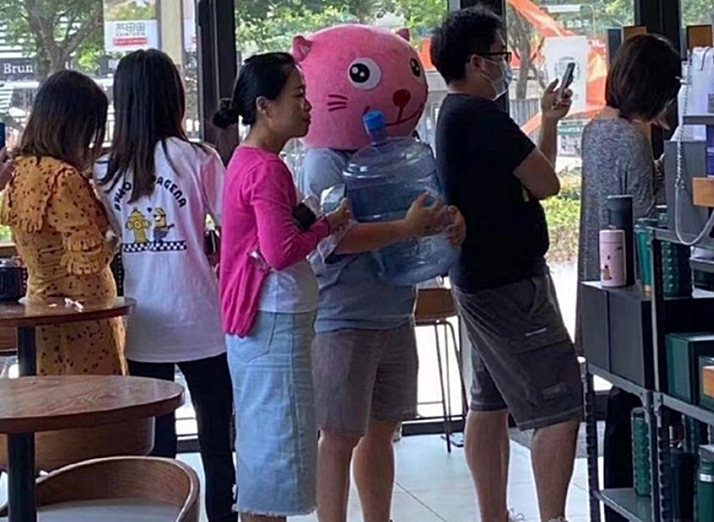 '컵'에 대한 해석은 사람들마다 각자 다른 것 같은데요. 일반적으로 우리가 생각하는 '컵'이나 '텀블러'를 가지고 온 사람들도 있었지만 초대형 컵, 티포트, 양동이, 심지어 정수기 물통을 들고온 사람들도 있었습니다. 그리고 이런 광경은 중국 SNS에 올라오며 많은 중국인들의 창의성(?)을 엿볼 수 있는 계기가 되었네요.