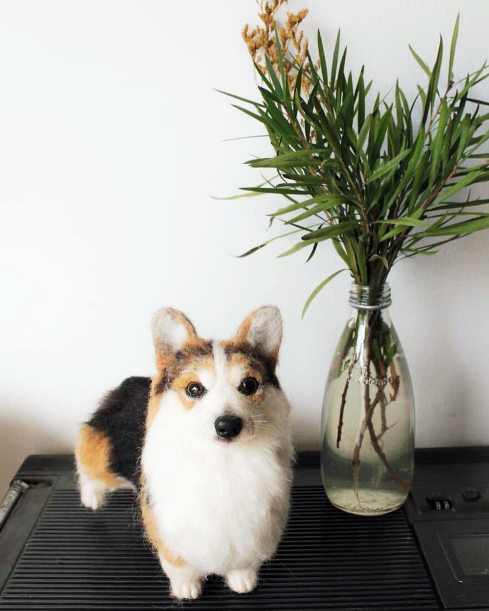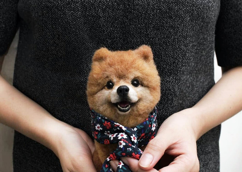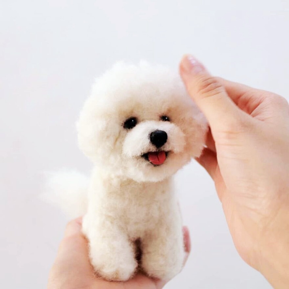 멜리사가 만드는 강아지 인형은 멀리서 보거나 사진으로 보면 진짜 강아지로 오해할 정도로 '싱크로율 100%'를 자랑하고 있는데요. 이는 '니들 펠트'라는 기법으로 만드는 것입니다. 니들 펠트는 양모 펠트라고도 불리는 것입니다. 이는 양모를 바늘로 콕콕 찔러 양모가 엉키게 만들어 이를 이용해 모양을 만드는 것이죠. 그리고 멜리사는 7년 전 니들 펠트에 빠져 지름까지 작업을 이어오고 있는 것입니다.