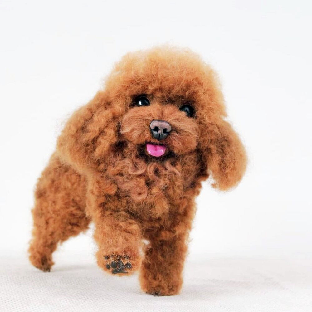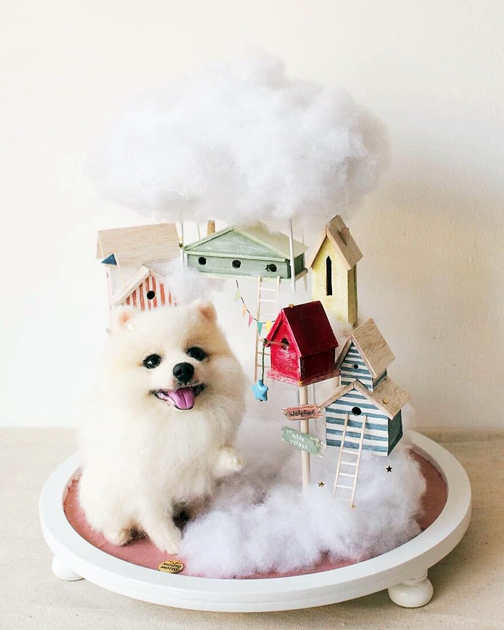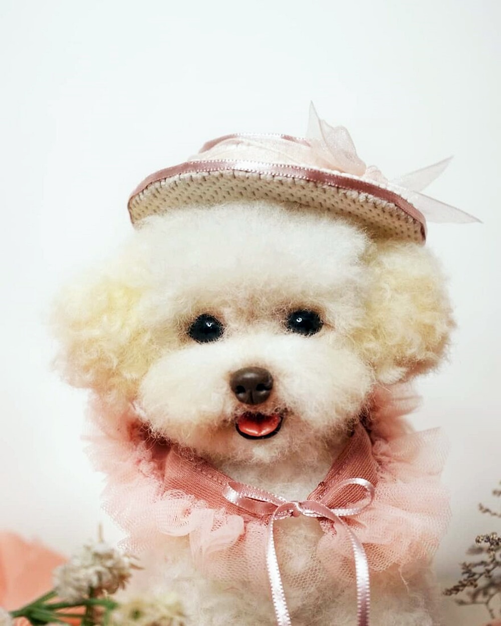 멜리사가 만드는 강아지 인형은 멀리서 보거나 사진으로 보면 진짜 강아지로 오해할 정도로 '싱크로율 100%'를 자랑하고 있는데요. 이는 '니들 펠트'라는 기법으로 만드는 것입니다. 니들 펠트는 양모 펠트라고도 불리는 것입니다. 이는 양모를 바늘로 콕콕 찔러 양모가 엉키게 만들어 이를 이용해 모양을 만드는 것이죠. 그리고 멜리사는 7년 전 니들 펠트에 빠져 지름까지 작업을 이어오고 있는 것입니다.