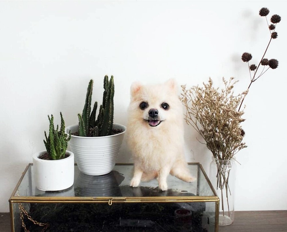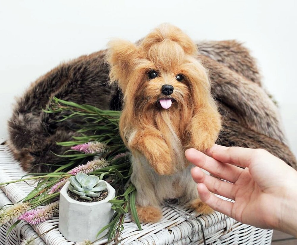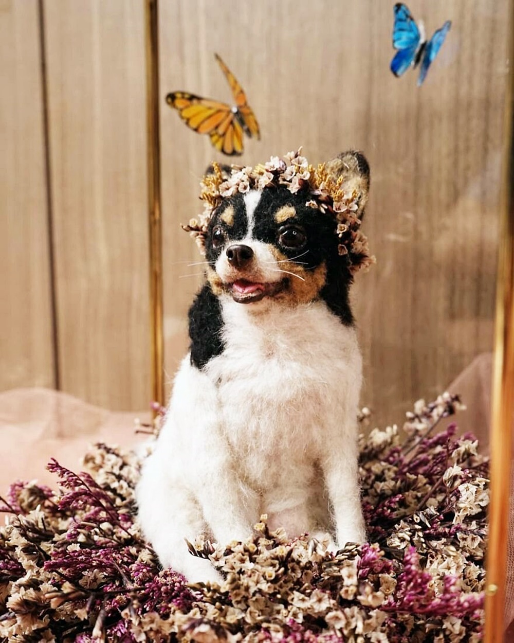 멜리사가 만드는 강아지 인형은 멀리서 보거나 사진으로 보면 진짜 강아지로 오해할 정도로 '싱크로율 100%'를 자랑하고 있는데요. 이는 '니들 펠트'라는 기법으로 만드는 것입니다. 니들 펠트는 양모 펠트라고도 불리는 것입니다. 이는 양모를 바늘로 콕콕 찔러 양모가 엉키게 만들어 이를 이용해 모양을 만드는 것이죠. 그리고 멜리사는 7년 전 니들 펠트에 빠져 지름까지 작업을 이어오고 있는 것입니다.