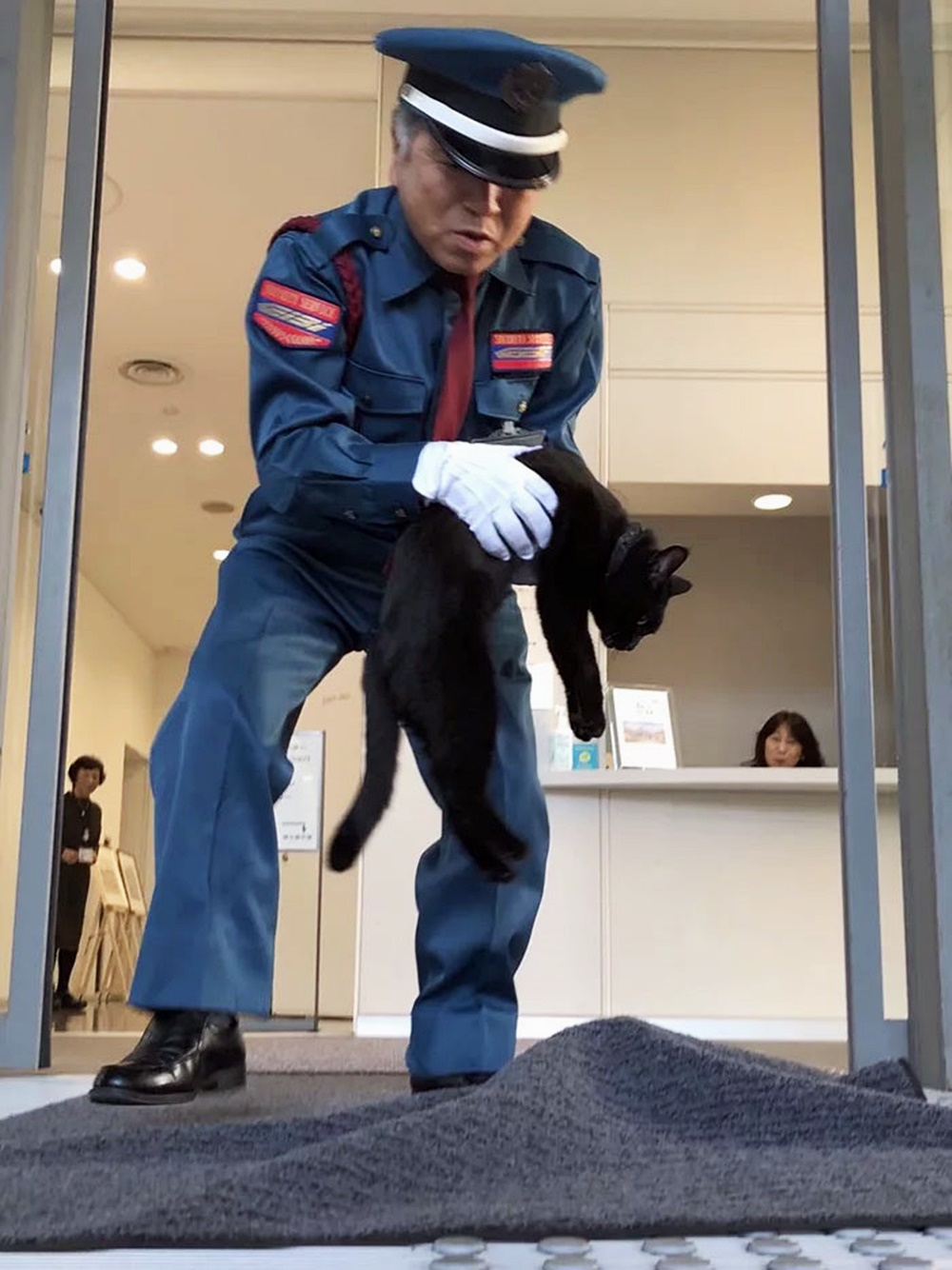 들어가려는 고양이와 막는 경비원의 숨막히는 신경전. 과연 앞으로 고양이는 이 미술관에 들어갈 수 있을까요?