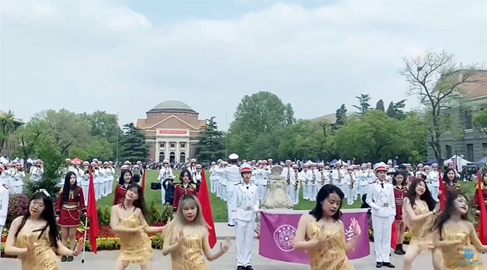 올해는 칭화대가 개교 110주년을 맞는 해입니다. 이에 칭화대에서는 개교 110주년을 맞아 다양한 행사를 진행했습니다. 그중 하나는 바로 여대생들의 댄스 공연이었는데요. 마칭 밴드의 음악에 맞춰 금색 미니원피스를 입고 몸을 흔들고 있네요. 그러나 이는 곧 많은 네티즌들의 비판에 휩싸이게 되었습니다.