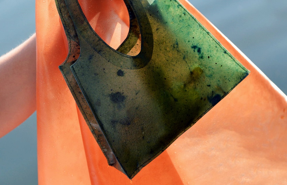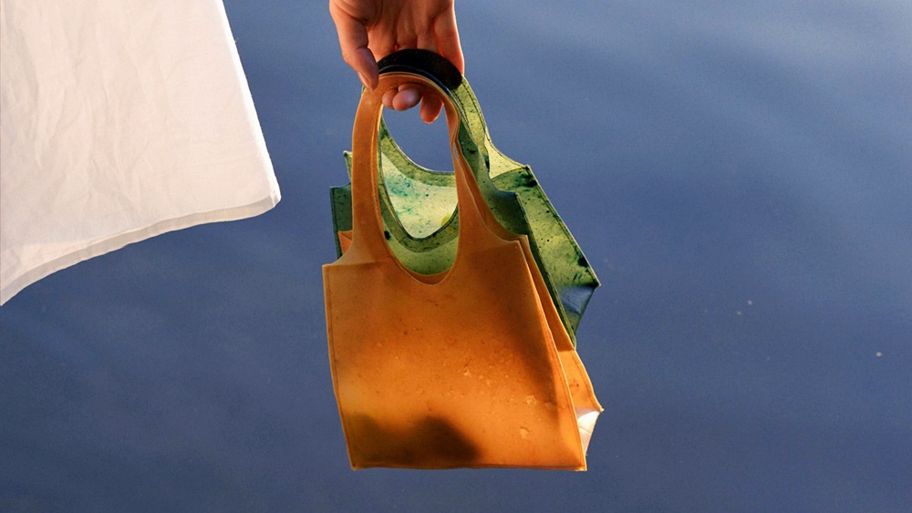 소네트155의 핵심성분은 과일의 세포벽에서 추출한 물질인 '펙틴'입니다. 펙틴은 천연 젤링레로서 천연 접착제 역할을 하고 있습니다. 그리고 이 펙틴 성분은 5mm 미만의 짧은 셀룰로오스 섬유로 강화되는데요. 이 섬유는 너무 짧아서 천으로 만들 수 없기에 산업 직물 생산 과정에서 걸러지는 것들입니다. 이후 이 혼합물은 따뜻한 물과 섞이고, 주형에서 5일 동안 경화된 후 바느질을 해 제품이 완성됩니다. 섬유의 길이와 밀도, 그리고 셀룰로오스의 비율이 가방의 투명도와 물질의 복원력을 결정한다고 하네요. 이 가방이 너무 닳아서 사용할 수 없게 되면 다시 따뜻한 물에 넣으면 되는데요. 이후 가방은 다시 용해되며 다시 재활용되어 동일한 품질을 새 가방으로 만들 수 있습니다.