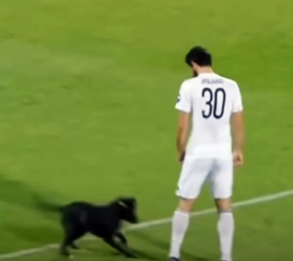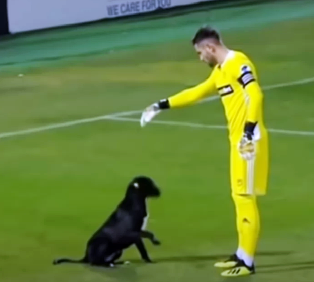이 강아지는 축구장 근처의 길거리에 살고 있는 유기견인데요. 축구장이 마치 자신의 집 안마당인듯 활발하게 축구장을 뛰어다니고 있습니다. 강아지 때문에 축구 경기는 잠시 중단되었는데요. 골키퍼는 강아지를 능숙하게 불렀습니다. 그리고 강아지가 앉도록 시켰습니다.