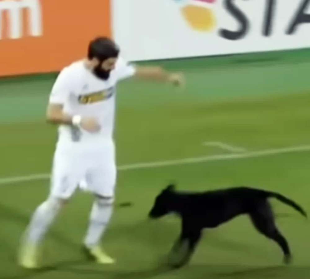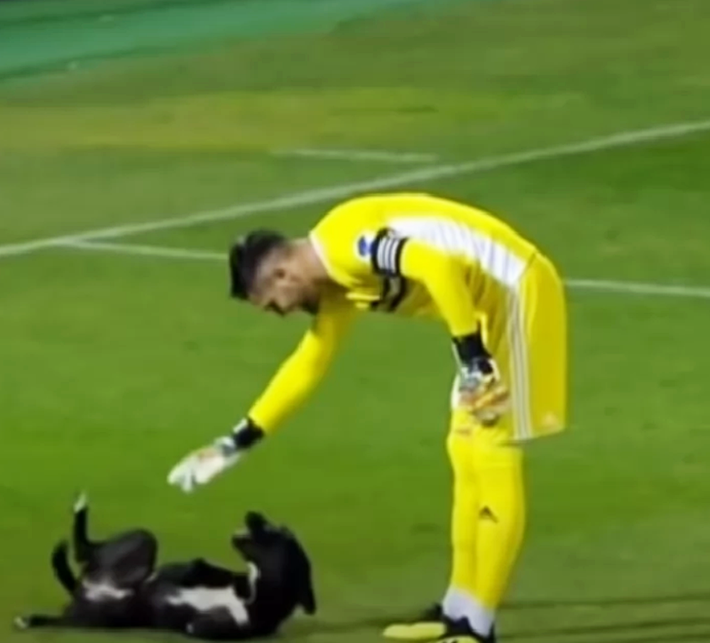 이 강아지는 축구장 근처의 길거리에 살고 있는 유기견인데요. 축구장이 마치 자신의 집 안마당인듯 활발하게 축구장을 뛰어다니고 있습니다. 강아지 때문에 축구 경기는 잠시 중단되었는데요. 골키퍼는 강아지를 능숙하게 불렀습니다. 그리고 강아지가 앉도록 시켰습니다.