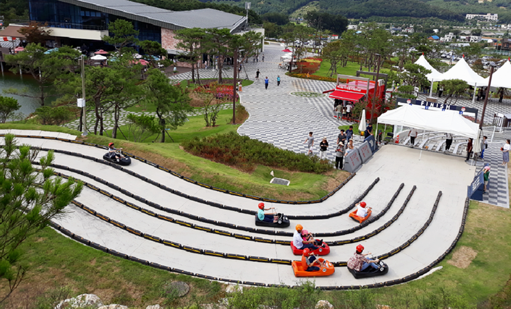 유적지뿐만이 아니라 파노라마 사진 같은 바다 경치도 있습니다. 바다 경치를 보며 한가롭게 산책을 즐길 수도 있지만 해변의 철도자전거나 경주용 자동차 등의 액티비티도 마련되어 있죠.