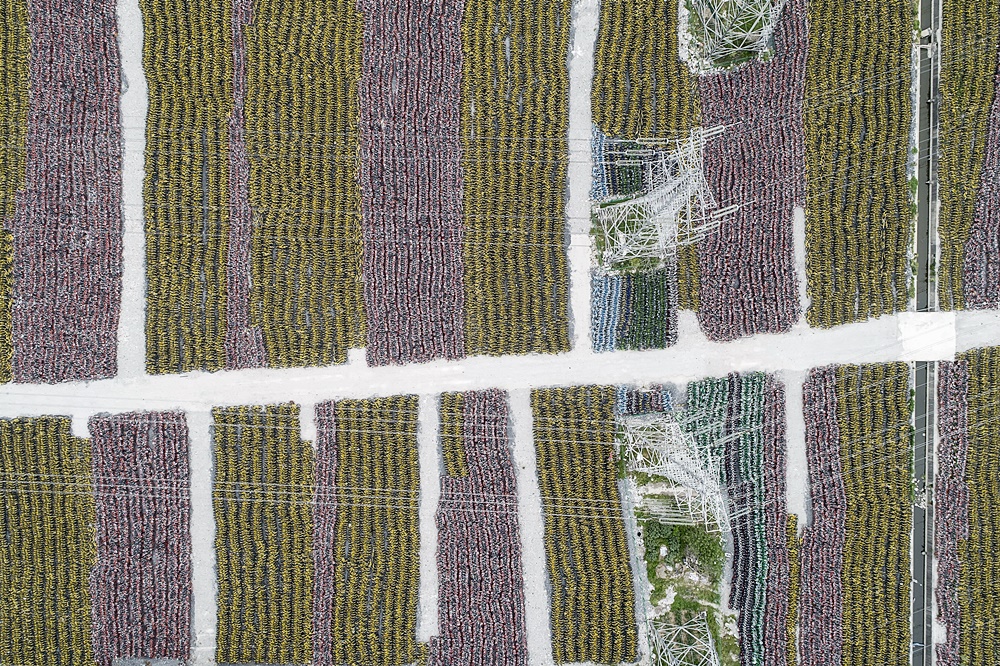 우궈용은 이 프로젝트를 위해 온라인, 그리고 오프라인에서 정보를 수집했습니다. 이후 공유 자전거의 경쟁이 치열했던 도시로 갔고, 자신이 목격한 것을 드론 사진, 비디오로 담았죠. 그리고 그는 중국 주요 20개 도시에서 '자전거 무덤'을 드론으로 포착했습니다. 다른 공유 자전거 브랜드와의 차별성을 두기 위해 형형색색으로 칠했던 자전거들이 빽빽하게 쌓여 있어 마치 화려한 꽃밭을 내려다보는 듯하네요.