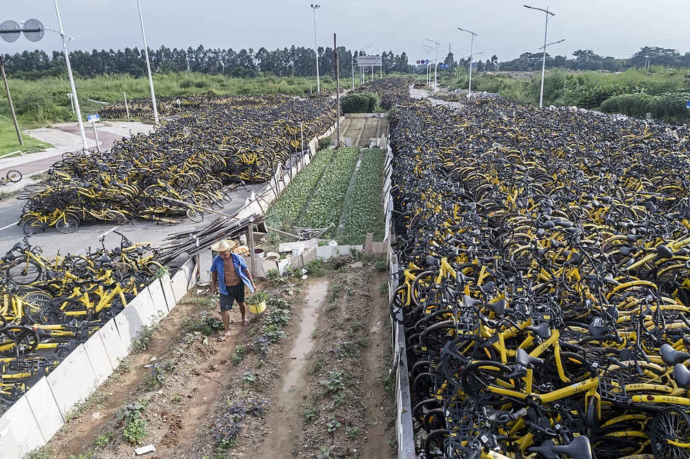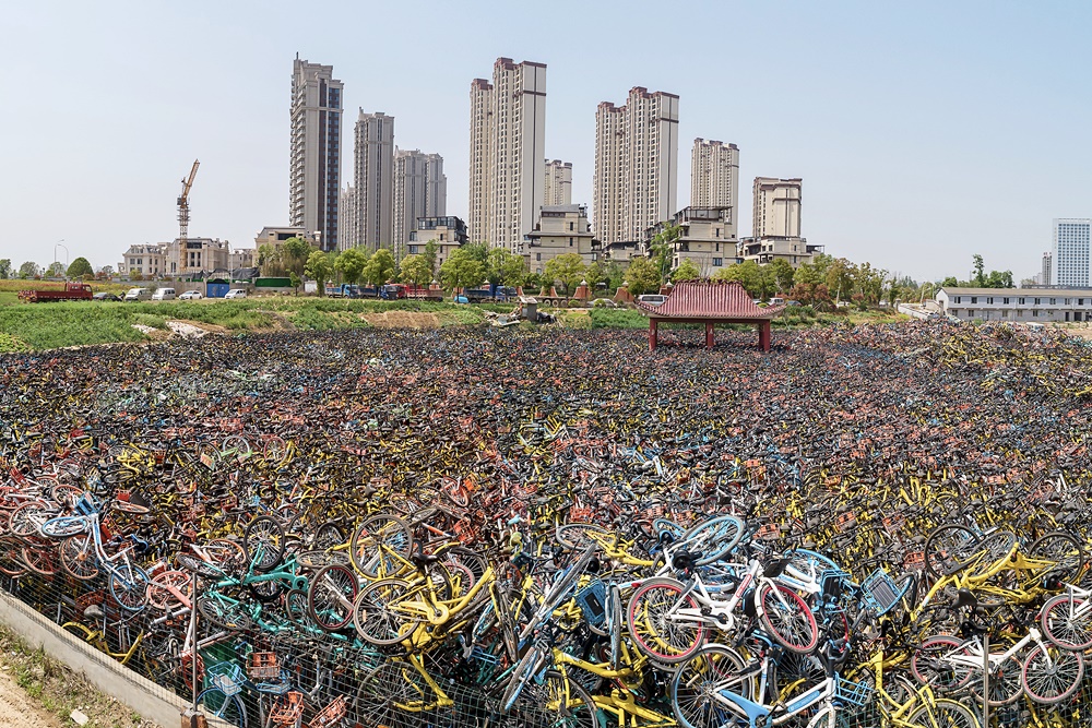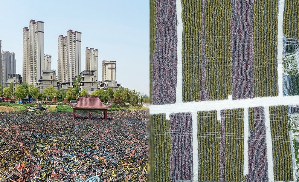그러나 이 공유자전거 붐은 오래가지 않았습니다. 사람들은 공유 자전거를 길거리에 방치했고, 공유 자전거 시장은 과잉 공급이 되었으며, 이 자전거들은 도시의 곳곳에 흉물처럼 자리했죠. 업계의 경쟁이 심화되며 파산하는 업체가 속출하기도 했습니다. 과연 경쟁적으로 찍어댔던 공유 자전거들은 어디로 갔을까요? 이 질문에 사진으로 답하고 있는 한 사진작가의 작품이 화제가 되고 있습니다. 바로 우궈용입니다.