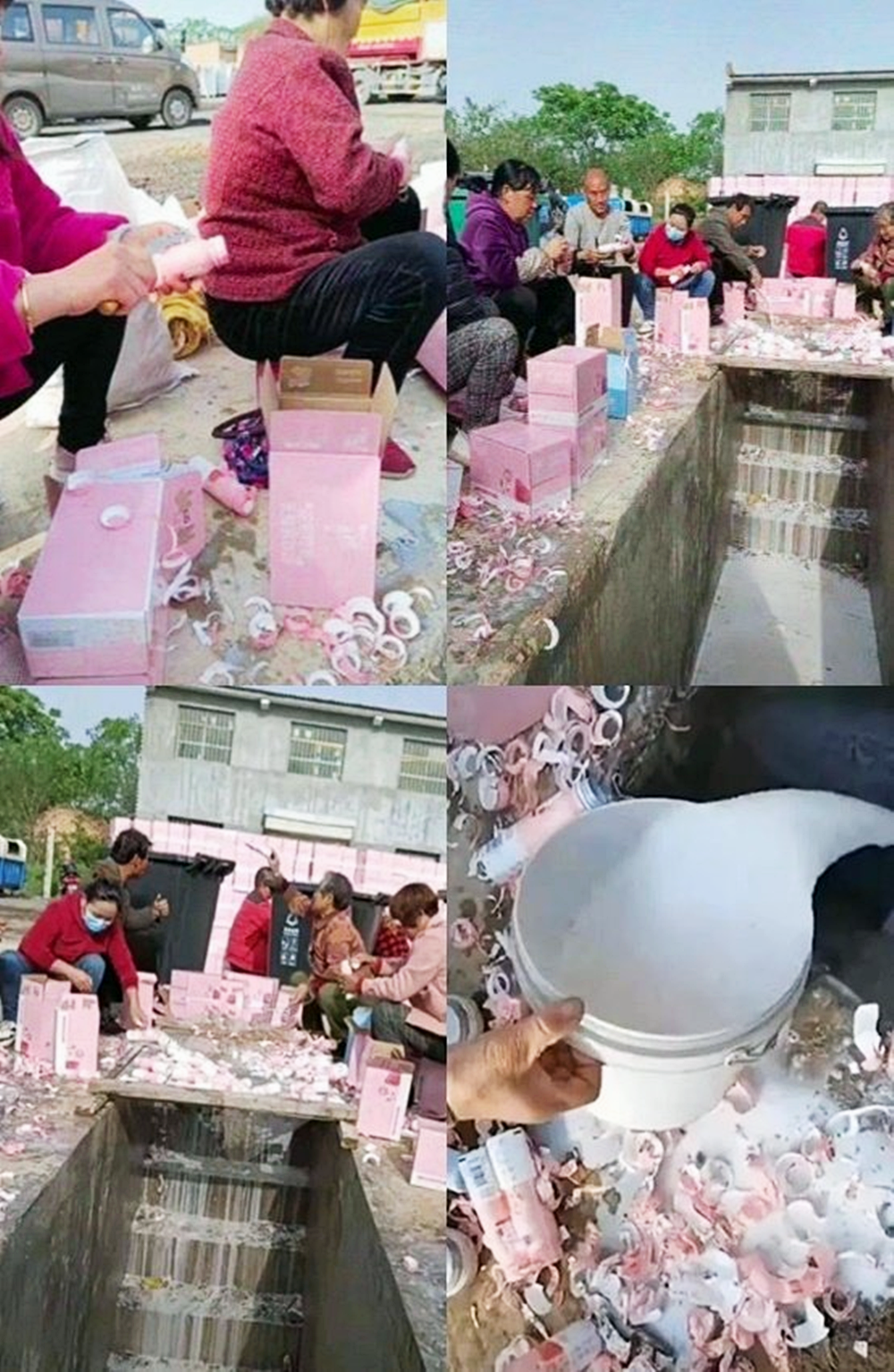 4월 말 중국판 트위터인 웨이보에는 한 영상이 올라왔습니다. 이 영상 속에서는 중년의 남녀가 개울가에 둘러 앉아 있는데요. 이들의 앞에는 분홍색 박스와 분홍색 라벨의 통이 담겨 있습니다. 이들은 이 상자 안에 담긴 것을 열심히 뜯고 있는데요. 내용물은 앞에 있는 통에 버린 후 통만 차곡차곡 모으고 있습니다. 이후 통에 든 내용물은 곧장 하수구로 콸콸 버리고 있네요. 이들은 뭘 하는 걸까요?