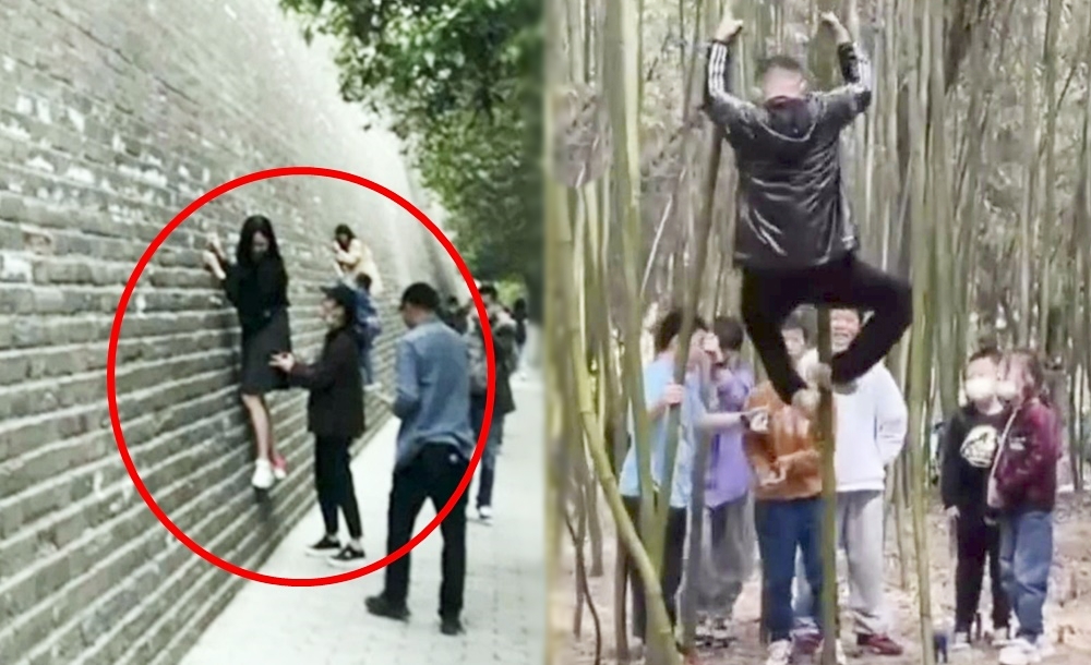 어떤 관광객들은 대나무를 타고 올라가기도 했는데요. 이들은 아이들에게도 대나무를 한번 타고 올라가보라고 말하며 대나무를 훼손시키고 있습니다. 영상 속에서 대나무를 올라가는 남성에게 '왜 대나무를 타고 올라가는 것이냐?'라고 묻자 이 남성은 '운동하기 위해서'라는 대답을 하기도 했네요.