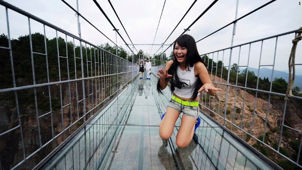 중국에는 기이한 건축물들이 많이 있습니다. 도시인들의 시선을 잡아끄는 초호화 고층 빌딩, 세계의 다양한 랜드마크를 똑같이 재현한 짝퉁 건물들이 유명한데요. 그리고 또 하나 중국 건축물에서 빠질 수 없는 것은 바로 '유리 다리'입니다. 지난 10년간 중국 전역에는 수많은 유리 다리가 건설되었는데요. 스릴을 좋아하는 중국인들의 마음을 단숨에 사로잡으며 최고의 관광지로 떠올랐습니다.