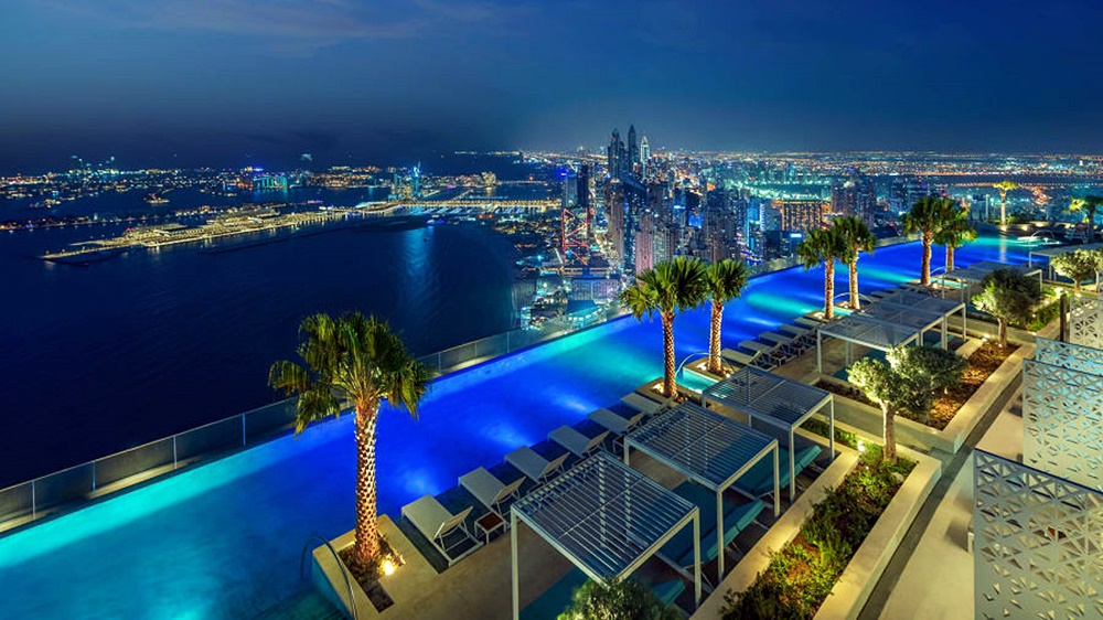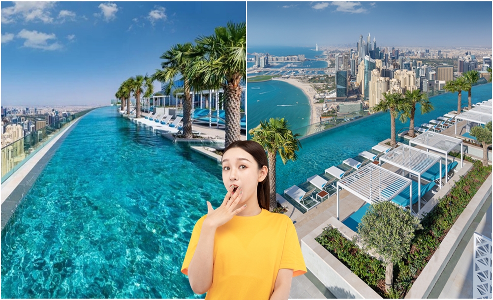 어드레스 비치 리조트는 지난 3월 두바이에 문을 열었습니다. 이곳은 두 개 동으로 이루어져 있는데요. 이 두 개 동은 63층부터 77층까지 스카이브릿지로 연결되어 있습니다. 스카이브릿지의 꼭대기에는 인피니티 풀이 설치되어 있습니다. 그리고 이는 293.906미터 높이에 있으며, 이는 에필탑의 10분의 9 정도 높이입니다. 한편 마리나 베이 샌즈의 인피니티 풀은 191미터 높이에 있는 것으로 알려져 있습니다.