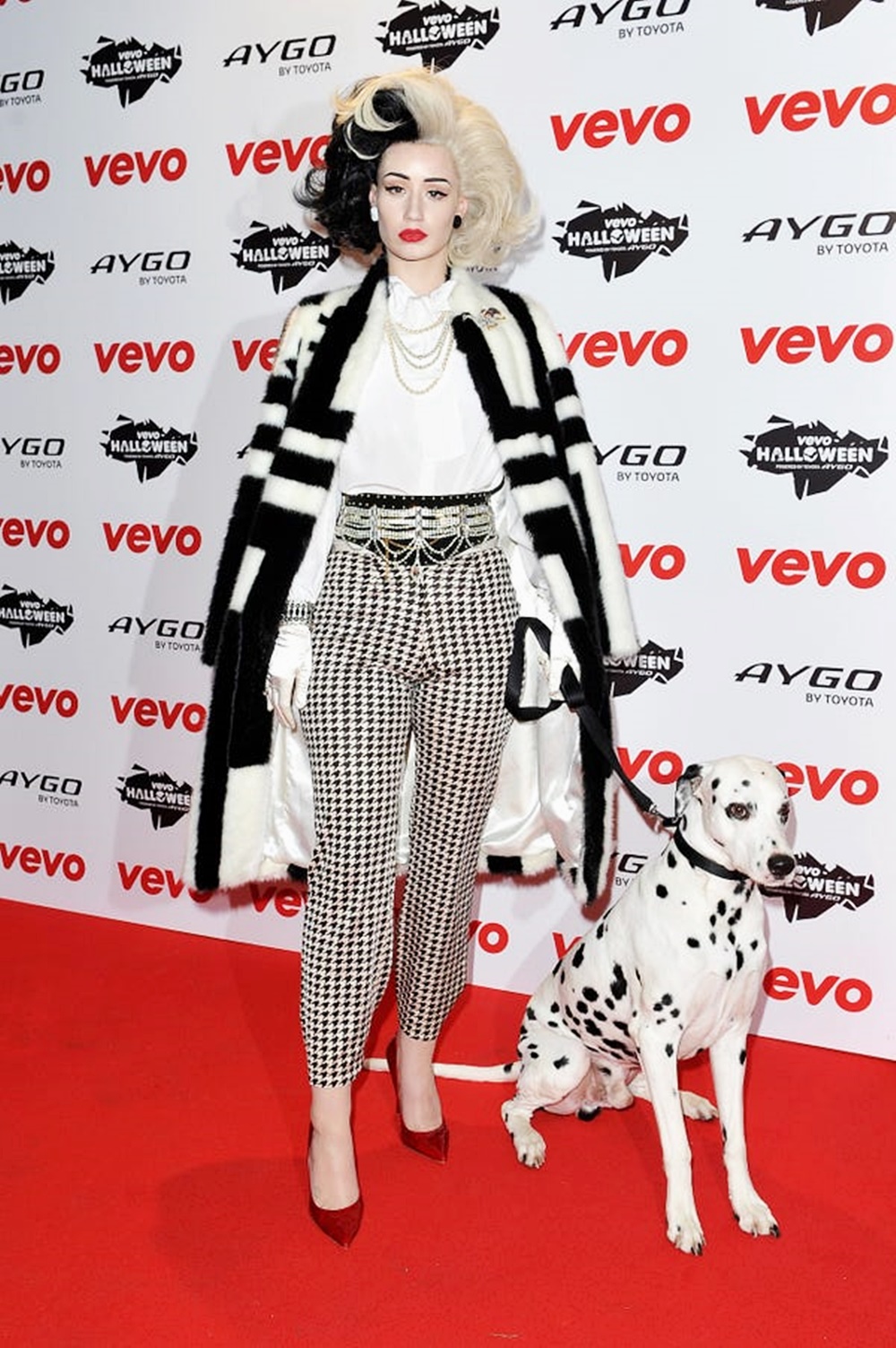 가수 이기 아잘레아는 지난 2013년 '크루엘라 드 빌'로 변신했습니다. 크루엘라 드 빌은 <101마리의 달마시안>에 나오는 빌런인데요. 블랙 앤 화이트 가발을 쓰고 진짜 달마시안 한 마리와 함께 레드카펫에 등장했습니다.