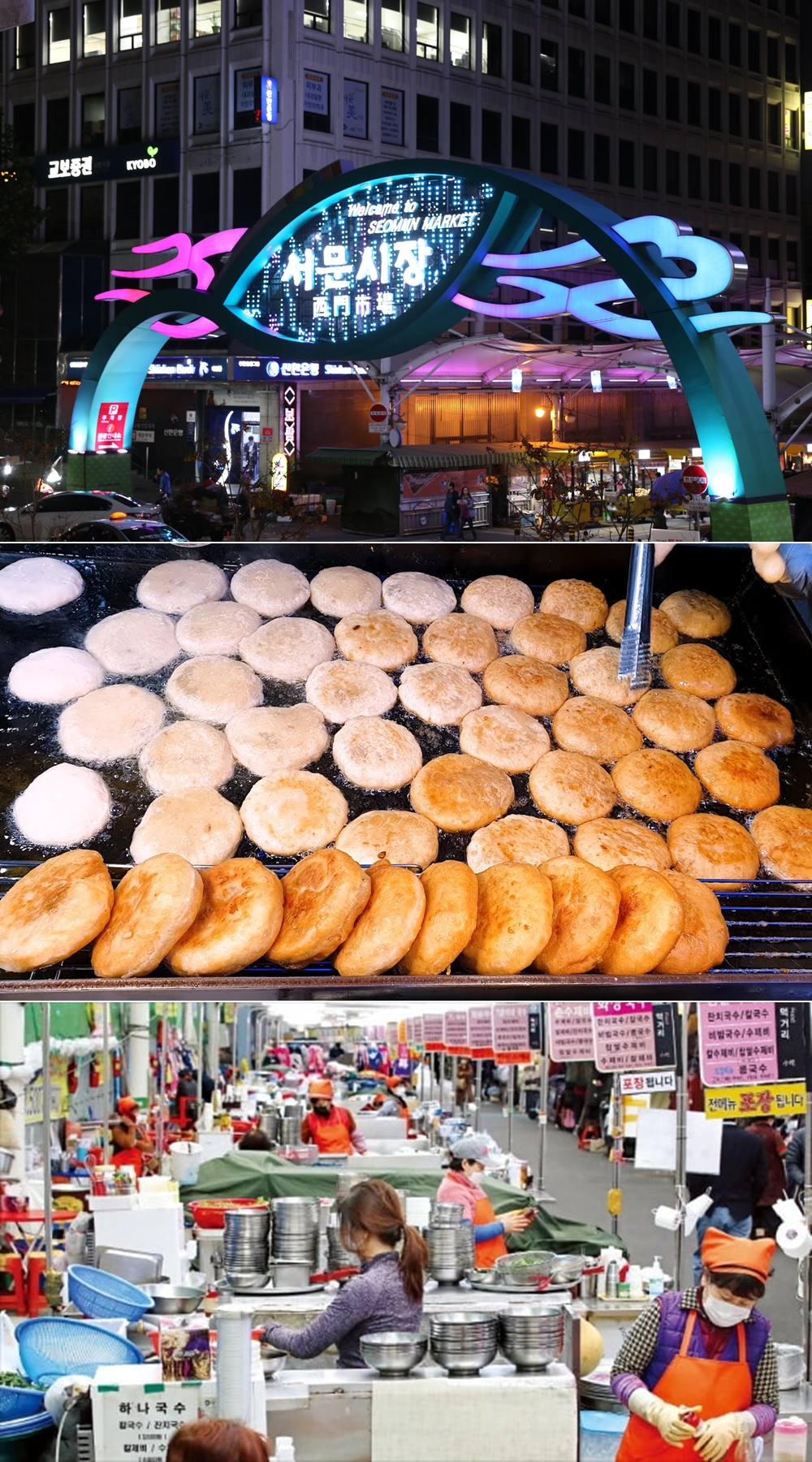 서문시장은 대구에서 가장 큰 시장 중의 하나입니다. 이곳에는 없는 것 없이 많은 것들을 팔고 있지만 여행객들을 끄는 것은 아마 먹을 거리가 아닐까 싶네요. 이곳에 낮에 방문한다면 수제비, 칼국수, 납작 만두, 호떡, 꽈배기 등을 먹을 수 있으며, 밤에는 야시장이 열려 다양한 음식을 먹을 수 있습니다.