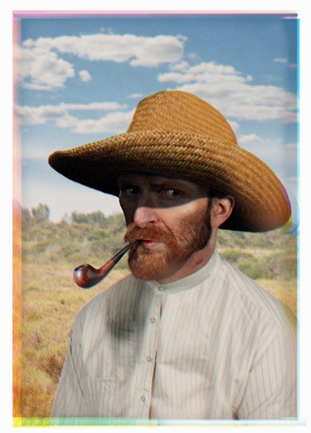 과연 그는 어떤 방식으로 빈센트 반 고흐의 얼굴을 사진으로 만든 것일까요? 바로 '반 고흐 닮은꼴' 사람들을 이용한 것이었습니다. 준데르트에서는 반 고흐 닮은꼴 대회가 열린다고 하는데요. 그는 이 대회에 참가한 사람들을 수소문했고, 거의 '도플갱어' 수준으로 반 고흐를 닮은 사람들 몇 명을 만날 수 있었습니다. 그리고 그는 스튜디오에서 이들의 사진을 촬영했고, 반 고흐와 가장 흡사한 각자의 특징을 모으기 시작했죠. 반 고흐의 딥 페이크 사진은 두 가지 버전으로 완성되었습니다. 반 고흐의 얼굴 오른쪽을 보는 측면 사진, 그리고 살짝 측면을 바라보는 정면 사진이었습니다. 자화상 속의 모습과는 또 다른 느낌을 자아내고 있네요.