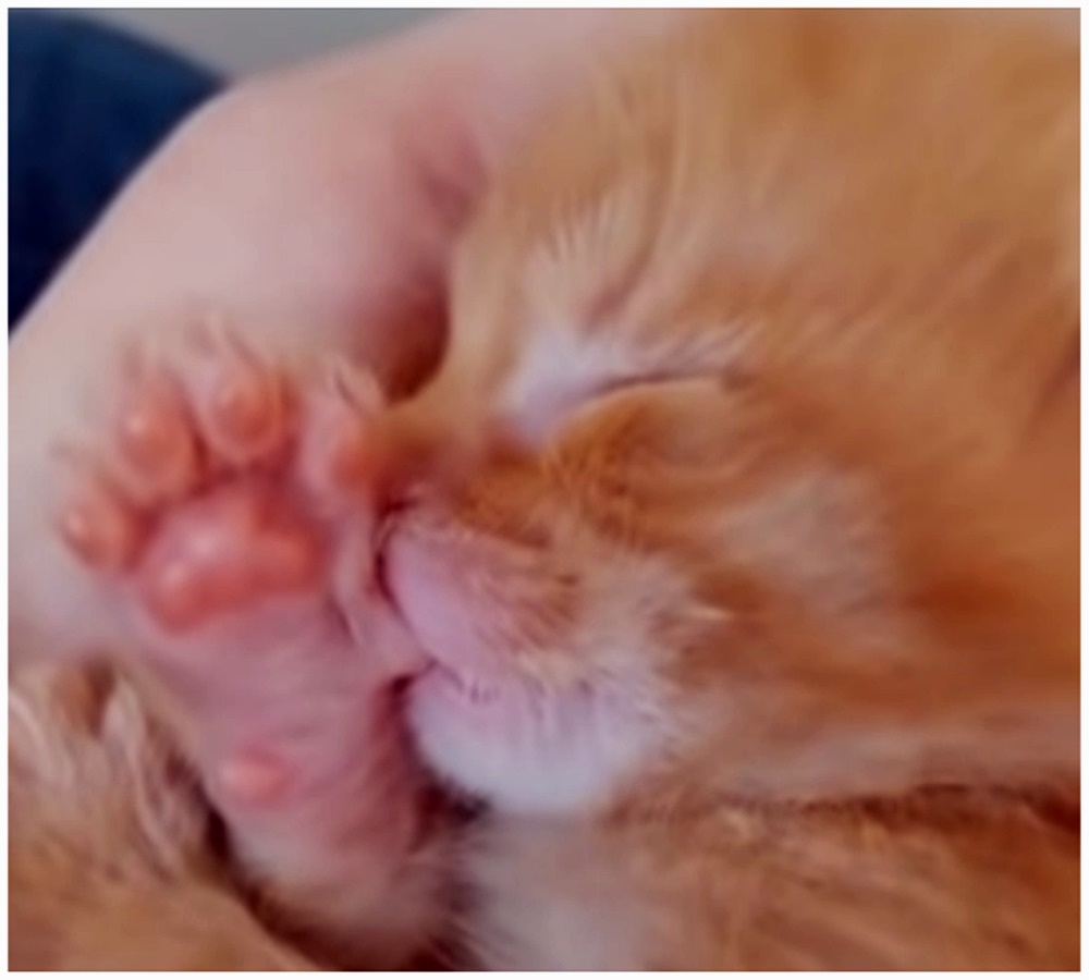 그리고 얼마 전 귀여움의 결정체인 한 아기 고양이의 영상이 화제가 되고 있는데요. 바로 '인간 아기'의 행동을 하고 있는 '아기 고양이'입니다. 30초 남짓한 짧은 영상에는 잠들어 있는 아기 고양이가 한 마리 보이는데요. 이 아기 고양이는 젤리를 다 내놓고 자신의 앞발의 엄지발가락을 쪽쪽 빨고 있습니다. 이런 고양이가 사랑스러운 주인은 고양이의 머리를 쓰다듬고 있는데요. 이 모습은 보기만 해도 마음의 평화가 찾아오는 듯합니다.
