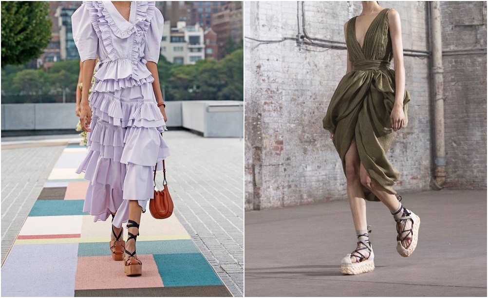 일명 '통굽'이라고 불리는 플랫폼 샌들 또한 2020년에 이어 2021년 여름 트렌드 중의 하나입니다. 특히 레이스업 스타일과 에스빠드리유 솔이 유행하고 있죠.