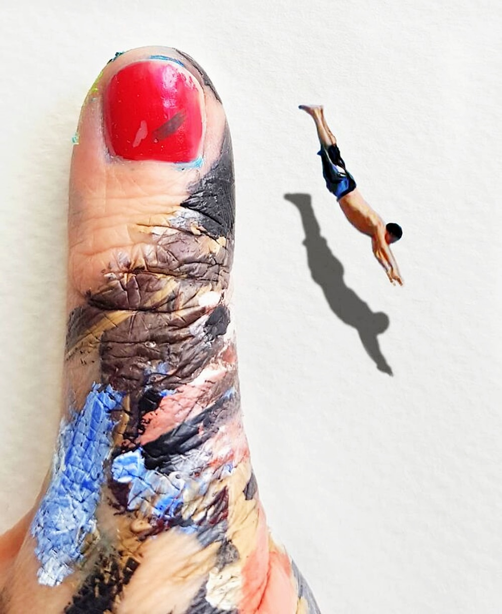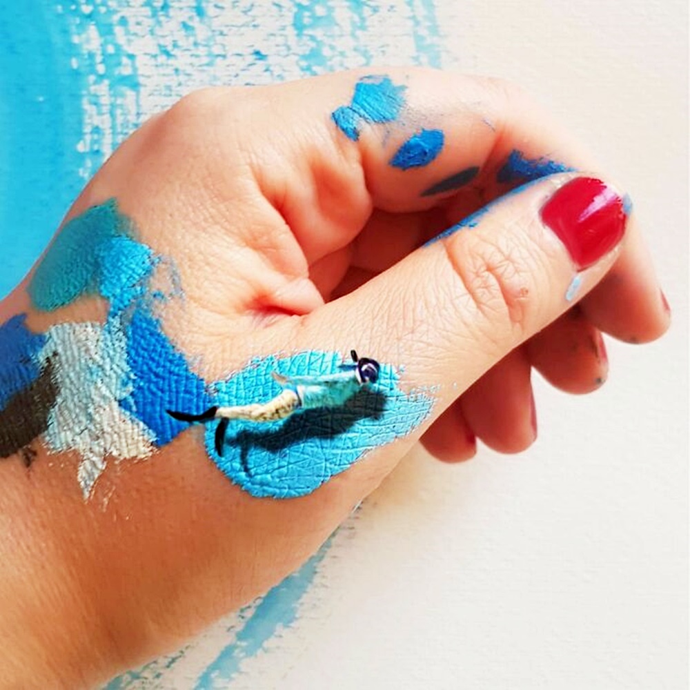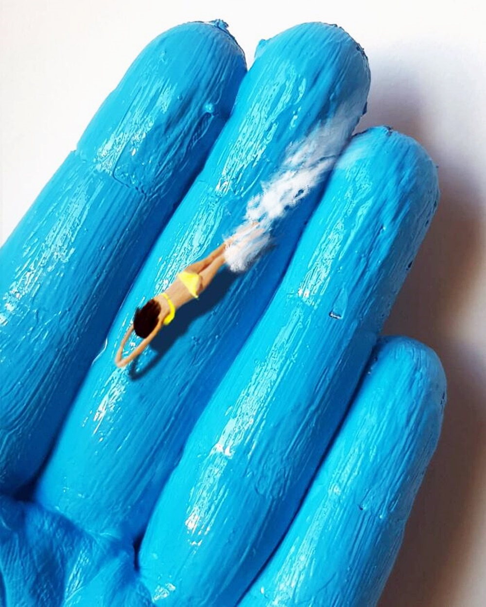 골사 골치니는 특히 '물'을 배경으로 그린 그림이 많은데요. 자신의 손가락과 손바닥은 바다가 되고, 수영장이 되고 있습니다. 그는 적절한 그림자를 그려 입체감을 강조하는 그림을 그리고 있는데요. 많은 네티즌들이 그의 그림에 감탄하고 있습니다.