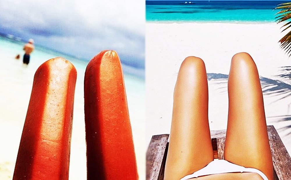 1위는 바로 핫도그 다리 사진입니다. 핫도그 다리 사진은 누워서 무릎을 세우고 허벅지를 찍는 사진인데요. 이 다리의 모습이 마치 핫도그의 소시지 같다고 해서 붙여진 별명이죠. 사실 이 사진은 실제보다 다리가 얇아 보여 많은 여성들이 선호하는 포즈이기도 하죠.