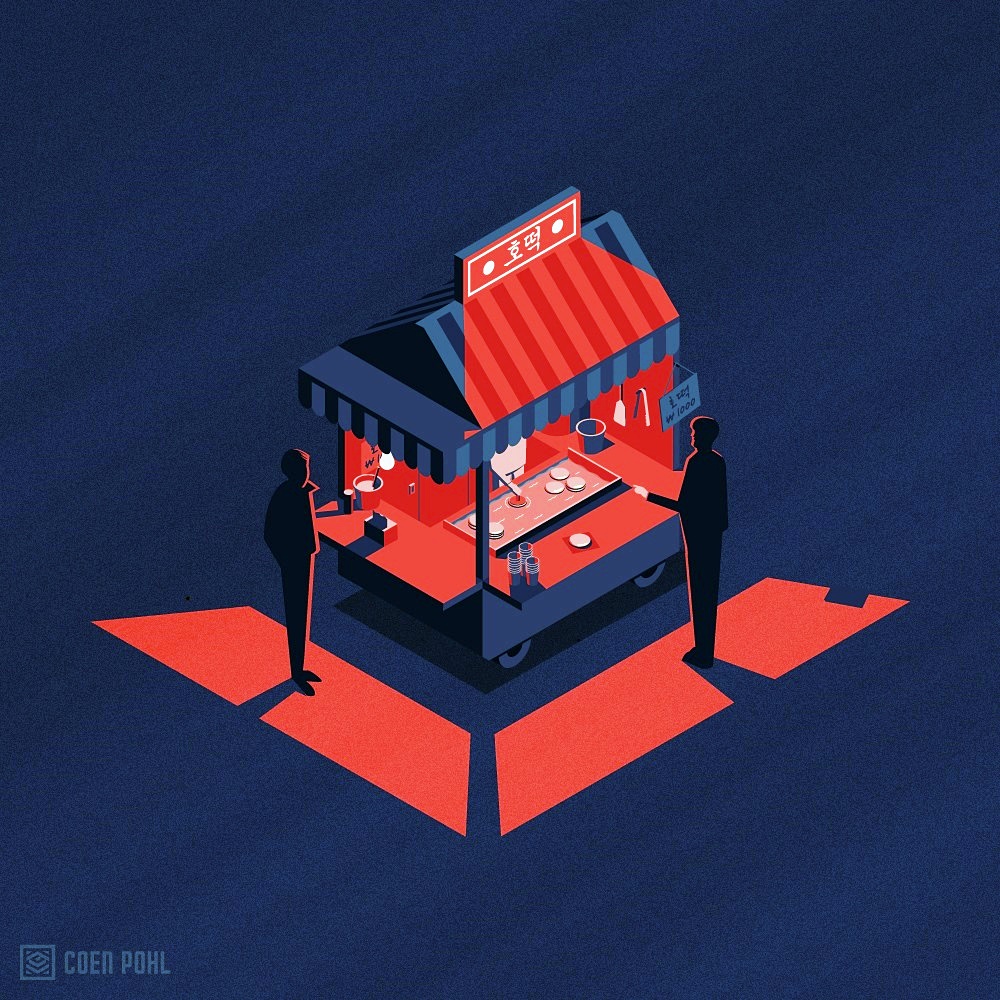 여러분은 해외여행을 왜 떠나시나요? 많은 이유가 있겠지만 그중 하나는 바로 '낯선 곳'이기 때문이 아닐까 싶습니다. 마찬가지로 우리나라를 방문하는 외국인들은 우리에게 친숙한 광경들을 매우 낯설고 이국적으로 여기곤 하죠. 오늘 소개할 한 아티스트는 한국을 여행한 후 자신이 경험한 한국의 일상에 대해 일러스트로 그렸는데요. 마치 한국 사람인 양 한국의 '디테일'을 정확하게 집어내 그려 화제가 되고 있습니다. 바로 암스테르담에서 활동하고 있는 일러스트레이터 쿤 폴(Coen Pohl)입니다.