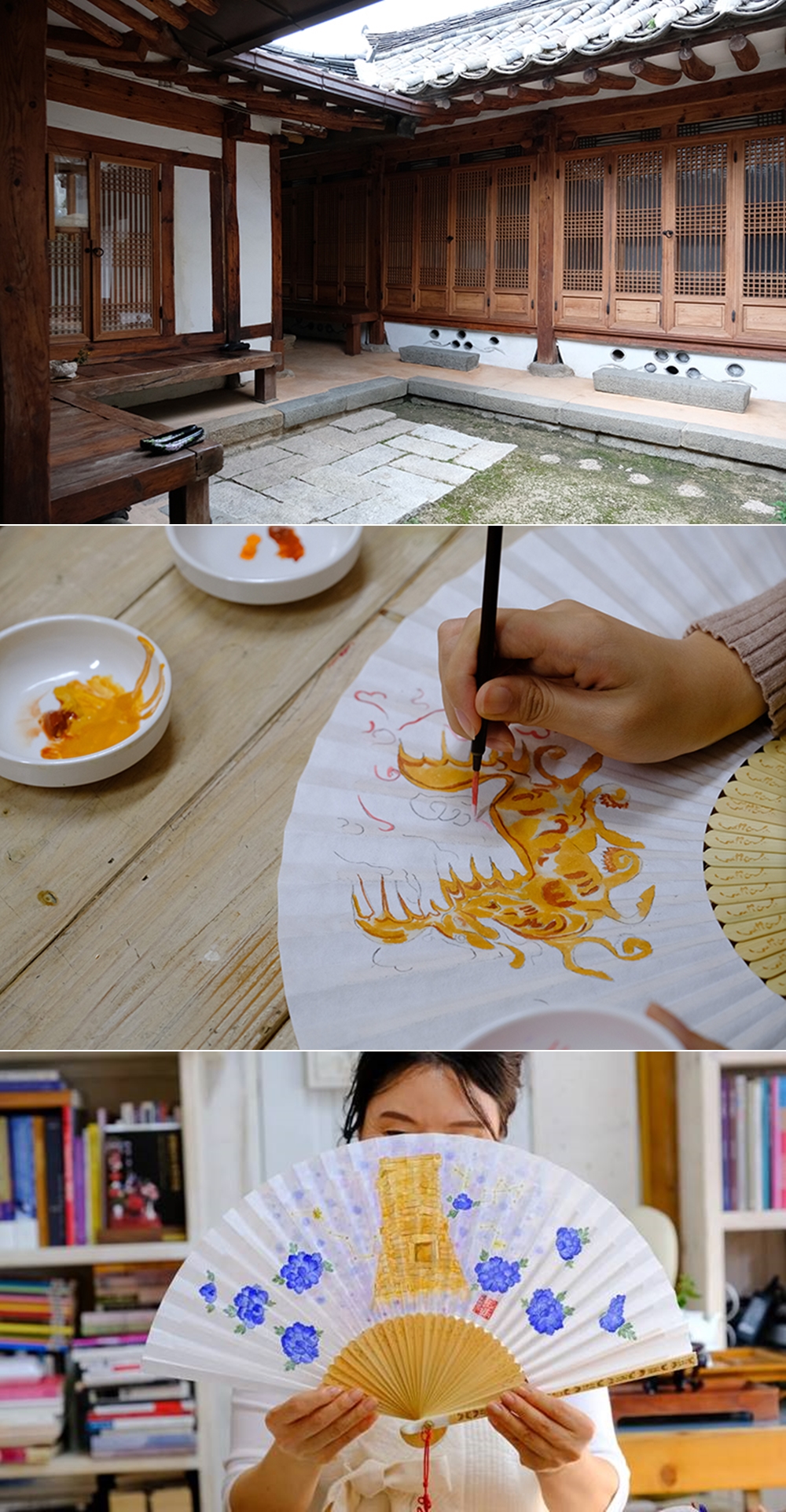 경주에 위치한 '문화공간 진'에서는 다양한 문화 체험 프로그램이 열리고 있습니다. 진에서는 규방 공예, 민화 그리기, 꽃꽂이 등이 진행되고 있는데요. 특히 부채에 민화를 그려서 가져가는 프로그램이 인기입니다. 민화에는 주술적 의미가 있는데요. 호랑이 그림은 악귀를 쫓고 좋은 기운을 불러오고, 색이 진하고 화려한 꽃들은 부귀영화를 상징하죠. 연꽃은 세속에 물들지 않은 고결함을 상징합니다. 대개 밑그림은 선생님이 그려주고, 체험객은 자신이 직접 채색을 하게 되는데요. 남녀노소 누구든지 즐기면서 참여할 수 있습니다.
