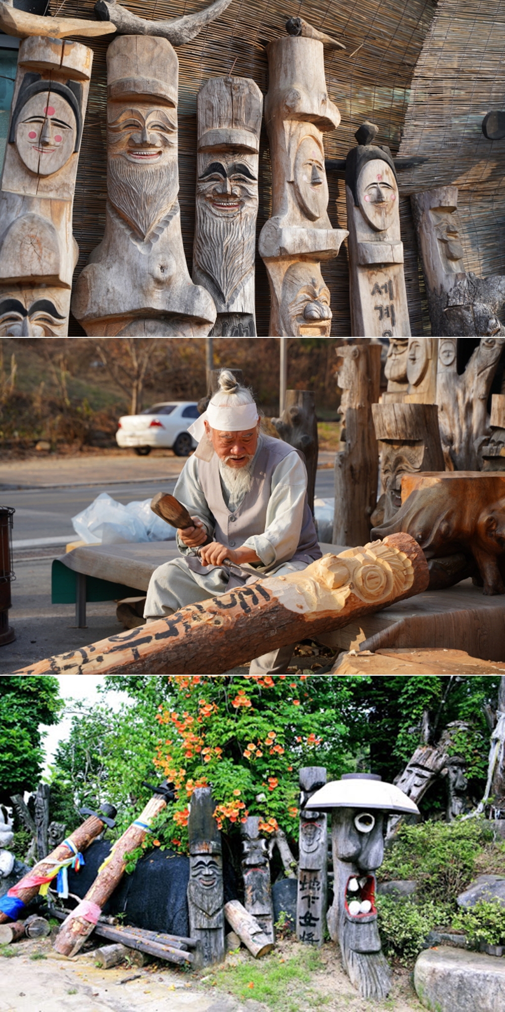 '장승'을 아시나요? 장승은 마을이나 절 입구, 혹은 길가에 세운 사람 머리 모양의 기둥인데요. 이는 이정표로 사용되기도 하지만 마을의 수호신 역할을 합니다. 그리고 이 장승을 미니 버전으로 직접 만들어볼 수 있는 체험이 있습니다. 바로 안동 목석원에서 하는 장승 만들기 체험입니다. 이 체험은 국가무형문화재 이수자이자 대한민국 장승 명인인 김종흥 작가의 지도를 받으며 진행되는데요. 큰 장승 대신 높이 50cm에서 80cm, 그리고 지름은 10cm 정도인 나무에 자신이 원하는 디자인대로 장승을 만들게 됩니다. 이 체험은 조각칼 장비를 사용하므로 7세 이상부터 체험이 가능하며, 손재주가 없는 사람이라도 작가의 도움으로 손쉽게 장승을 만들 수 있습니다.