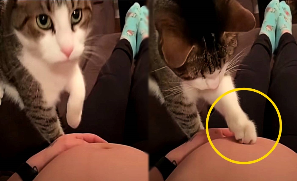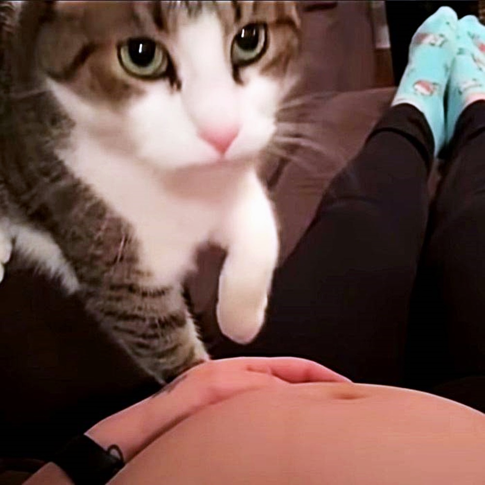 오늘 소개할 고양이도 그 중의 하나인데요. 이 고양이는 마치 주인이 임신한 것을 알아차린 것 같은 모습을 보이고 있어 큰 화제가 되고 있습니다. 영상 속에는 임신으로 인해 불룩 나온 배가 먼저 나옵니다. 그리고 이 임산부의 옆에는 고양이 한 마리가 있습니다.