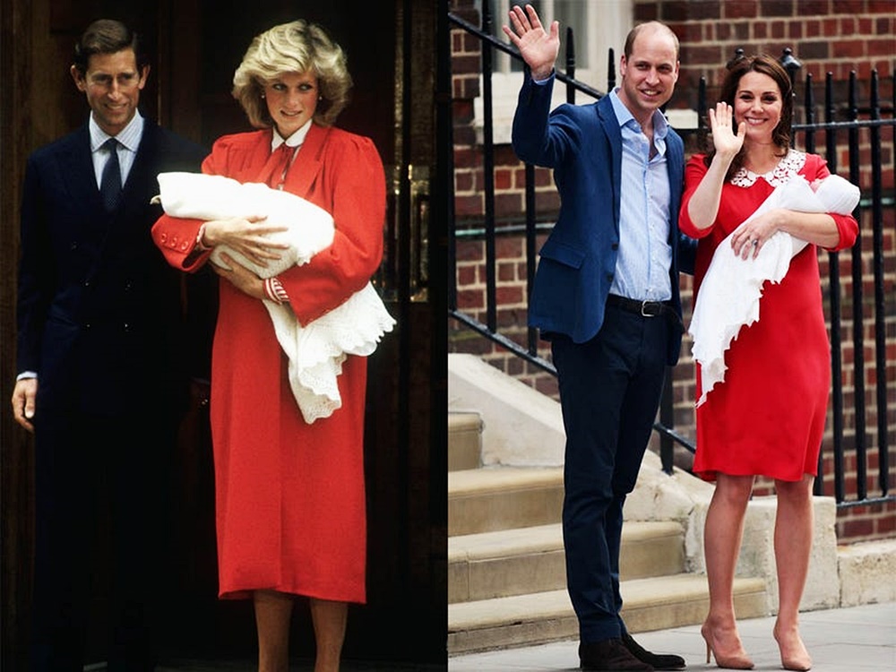 2018년 루이 왕자를 출산한 케이트 미들턴은 화이트 칼라가 있는 빨간색 원피스를 입고 등장했습니다. 이 모습은 다이애나비를 연상케 했는데요. 다이애나 비 또한 1984년 해리 왕자를 출산한 후 비슷한 컬러 매치의 원피스를 입고 등장했습니다.