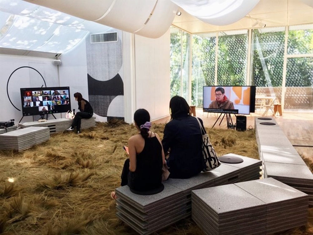 이번 비엔날레의 주제는 바로 '어떻게 함께 살아갈 것인가?'였습니다. 코로나19로 인해 전 세계가 급격한 변화를 경험한 이때 우리에게 던지는 적절한 질문인 거이죠. 이 질문에 대해 한국관은 '미래 학교(Future School)'이라는 콘셉트를 대답으로 내놓았습니다. 기존의 학교가 아닌 전 세계가 하나 되어 토론하고 답을 찾아가는 것을 해답으로 내놓은 것이죠. 그리고 이런 콘셉트에 맞춰 한국관을 꾸몄습니다.