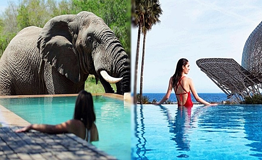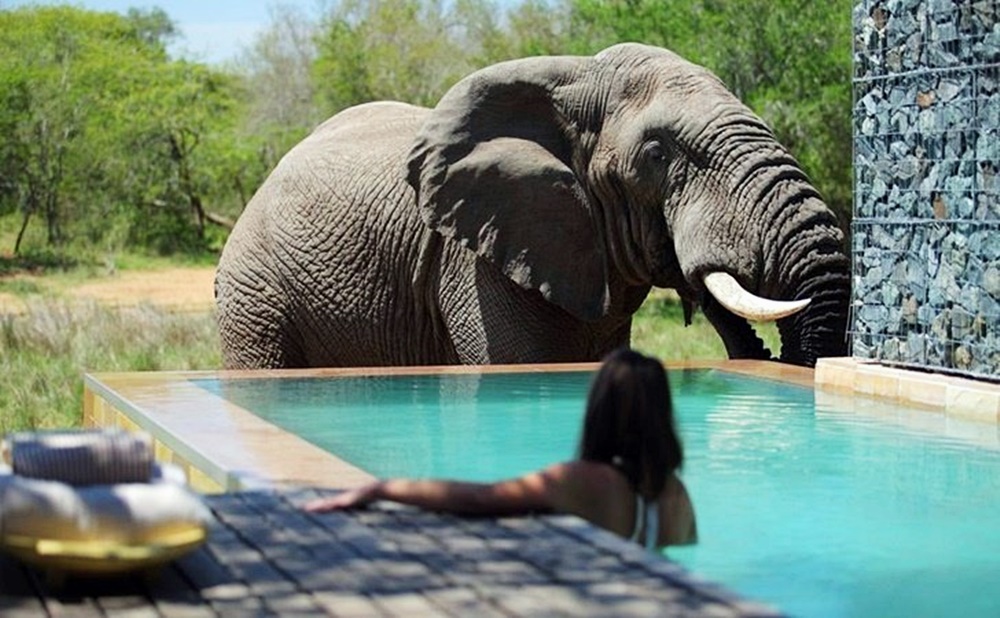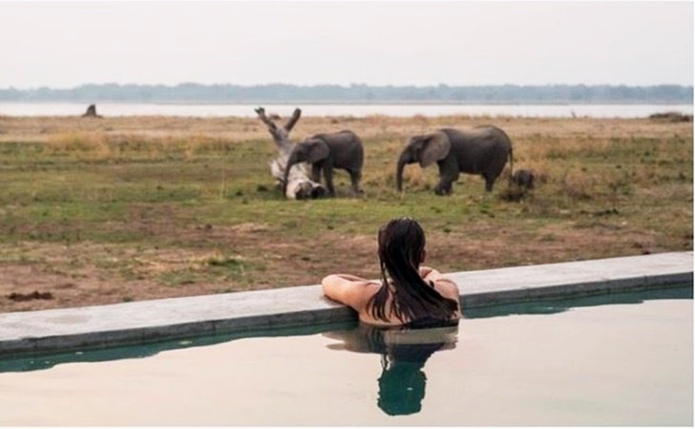앞서 소개한 수영장들과는 달리 작고 소박해 보이는 수영장을 소개합니다. 바로 보츠나와의 오카방고 삼각주에 있는 캠프 '몸보'입니다. 이 수영장 자체는 크게 특별할 것이 없습니다. 큰 장식도 세련된 콘셉트도 없기 때문입니다. 그러나 이곳은 세상 어디에서도 볼 수 없는 광경이 눈 앞에 펼쳐지는데요. 바로 코끼리, 기린, 영앙 등 야생동물을 목격할 수 있기 때문입니다.