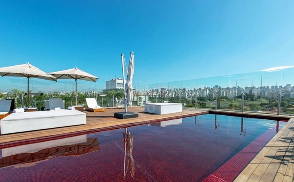 보통 수영장이라고 하면 청량한 파란색이나 하늘색을 떠올리는 경우가 많이 있습니다. 그러나 오늘 소개할 이 수영장은 전혀 다른 콘셉트로 만들어졌습니다. 바로 핏빛 수영장입니다. 물론 이 수영장의 물 색상이 그런 것은 아닙니다. 바로 바닥의 모자이크 타일 색상 때문이죠. 이 수영장은 브라질의 상파울루에 위치한 호텔 유니크의 8층에 위치하고 있는데요.