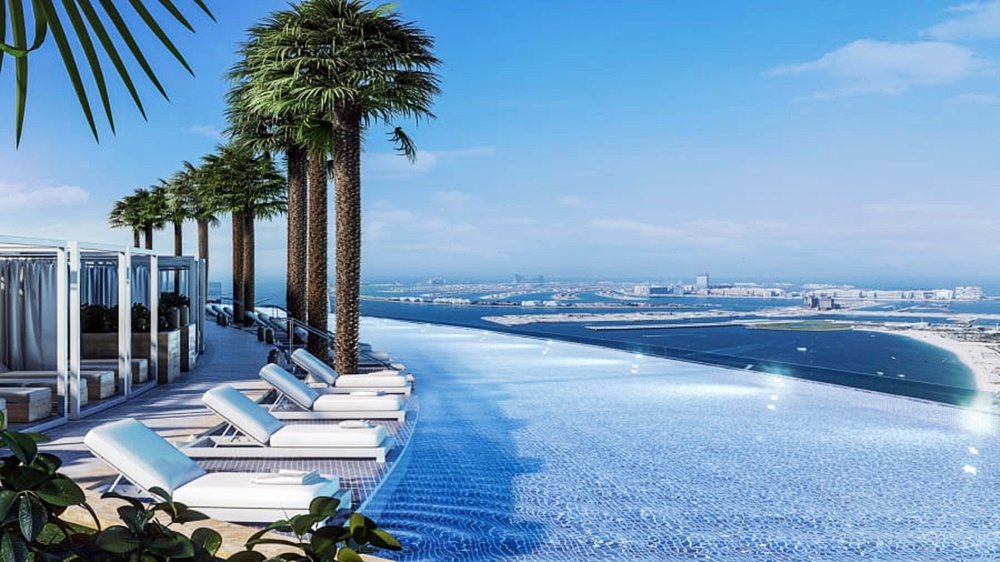 '세계에서 가장 높은 곳에 있는 인피니티풀' 과연 어디일까요? 아마 많은 사람들이 싱가포르에 위치하고 있는 마리나 베이 샌즈의 인피니티 풀을 떠올릴 것 같습니다. 그러나 지난 3월 이 수식어의 주인은 바뀌었습니다. 바로 두바이에 위치한 '어드레스 비치 리조트'의 수영장입니다. 이곳은 두 개 동으로 이루어져 있는데요. 이는 63층부터 77층까지 스카이브릿지로 연결되어 있습니다. 그리고 스카이브릿지의 꼭대기에는 인피니티 풀이 설치되어 있죠. 이는 에펠탑의 19분의 9 정도 높이라고 하네요. 크기 또한 남다릅니다.