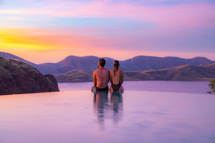 호주 서쪽에 위치하고 있는 아길호수(Lake Argyle)변에 위치하고 있는 레이크아길 리조트에는 환상적인 인피니티풀이 있습니다. 수영장에서 붉게 지는 석양을 바라보는 것. 모든 커플들의 로망이 아닐까 싶네요.