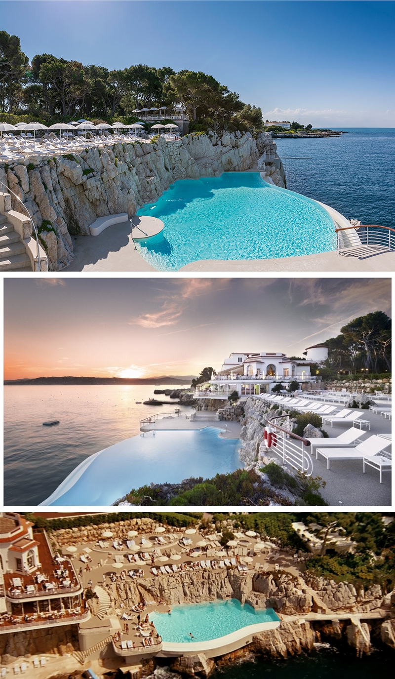 할리우드 스타들의 단골 호텔이자 영화 촬영지이기도 했던 이 호텔은 역사가 매우 깊습니다. 1914년에 이 수영장을 만들기 위해서 현무암 절벽에 다이너마이트를 폭파했으며 그 돌을 모아 수영장의 벽으로 만들었습니다. 덕분에 자연속에서 수영을 하는 듯한 느낌을 주네요. Hotel du Cap-Eden-Roc이라는 이름을 가진 이 호텔에서는 샤넬 패션쇼가 열리기도 했다고 합니다.