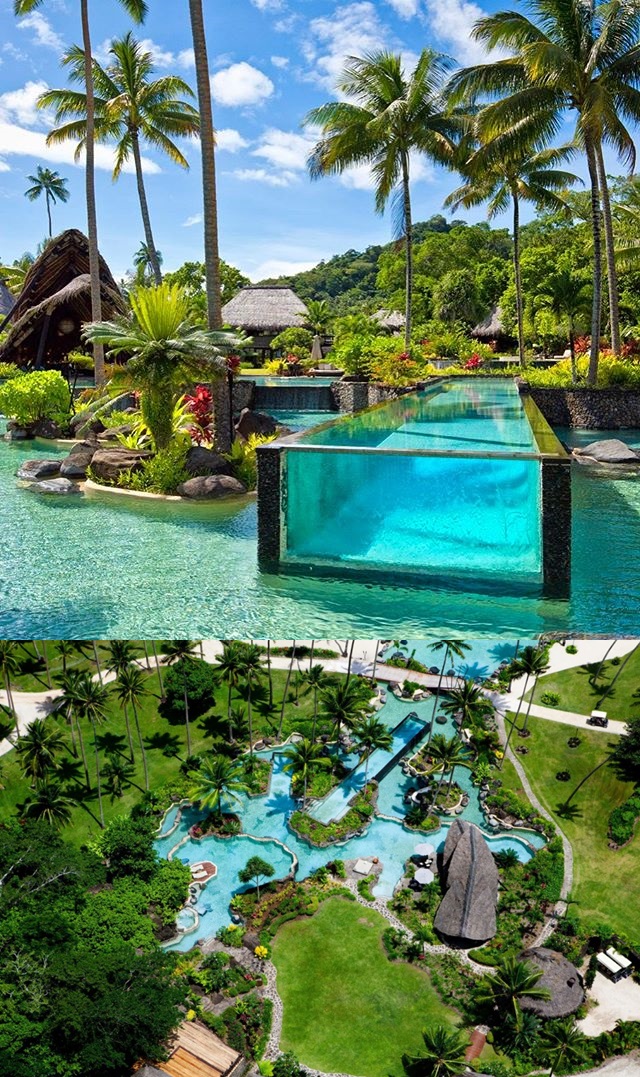피지의 프라이빗 아일랜드인 라우칼라는 넓은 섬의 단 20%만 개발이 되어있고 나머지 부분은 남태평양의 자연을 느낄 수 있는 곳입니다. 이곳은 수영장으로 SNS의 유명세를 타고 있습니다. 600평의 라군풀 안에 25미터의 랩풀이 더해져 있어 독특함을 자아냅니다. 이 랩풀에서 숨이 찰때까지 수영을 하거나 인어가 되어볼 수도 있겠죠.