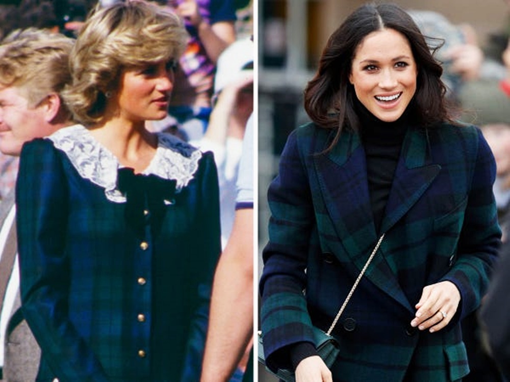해리 왕자와 약혼한 지 얼마 되지 않아 메건 마클은 버버리의 타탄체크 무늬의 코트를 입고 등장했습니다. 이 패션은 10년 전 다이애나비의 원피스를 떠올리게 했는데요. 다이애나비는 1987년 8월 이 의상을 입고 공식 석상에 등장했습니다.
