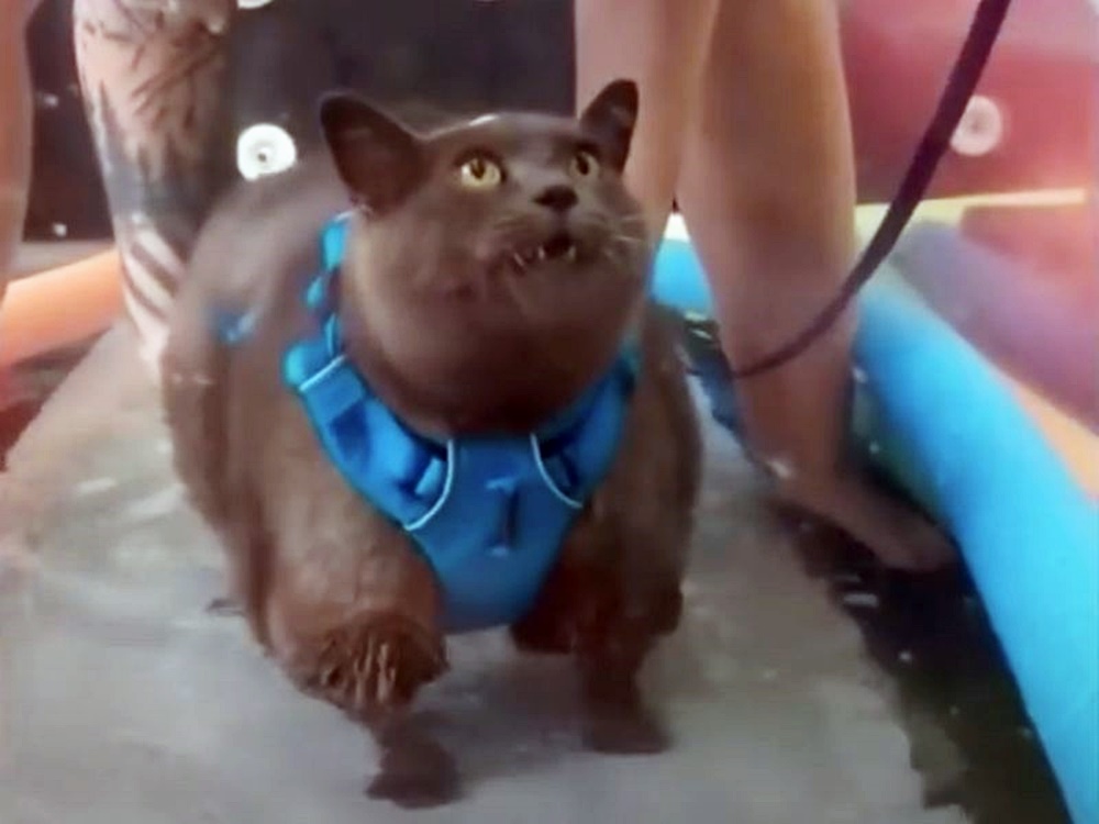 얼마 전 한 고양이 또한 체중을 줄이기 위해 운동에 돌입했는데요. 운동을 온몸으로 격렬하게 거부하고 있는 모습이 큰 화제가 되고 있습니다. 무려 9.8kg의 체중을 자랑하고 있는 뚱냥이 신더블락(Cinder-Block)입니다.