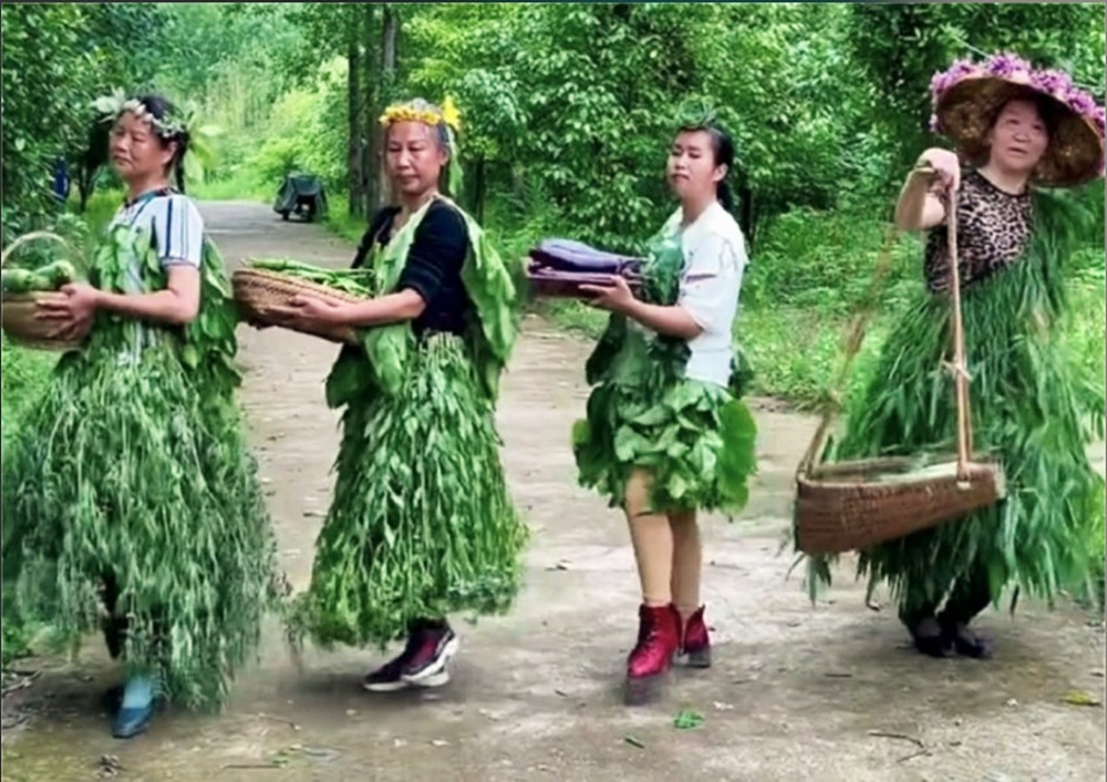 이 영상이 촬영된 곳은 중국 남동부에 있는 후난성에서 촬영된 것입니다. 이 영상을 촬영한 사람은 쉬(Xu)씨인데요. 패션쇼 영상을 자신의 더우인 계정에 올렸고, 이 영상이 화제가 된 것이었습니다. 영상 속에는 총 네 명의 여성이 나오는데요. 이 여성들은 나뭇잎으로 옷을 해 입고, 꽃으로 화관을 만들어 써 자연친화적인 스타일링을 보여주고 있습니다.