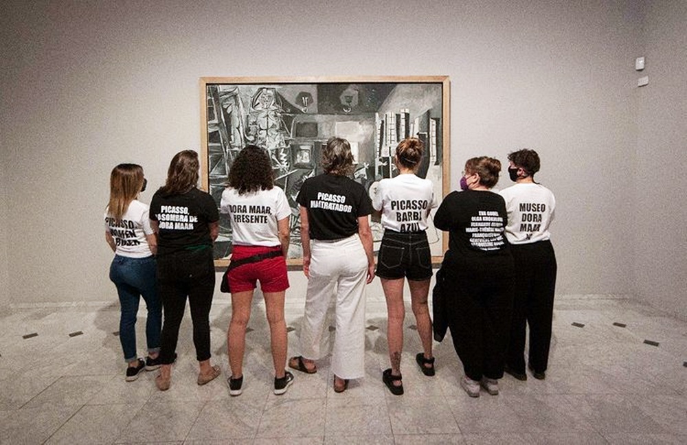 그리고 얼마 전 피카소의 이런 행동에 대해 항의하고 여성의 목소리를 높인 시위가 화제가 되고 있습니다. 바로 예술가이자 스페인 베니카심의 예술 학교 에스콜라 마싸나의 교수로 재직 중인 마리아 요피스(Maria Llopis)와 그녀의 수업을 듣는 학생들이었습니다. 이들은 5월 27일 바르셀로나에 있는 피카소 미술관을 방문했는데요. '피카소, 여성 학대자' '피카소, 도나 마르의 그림자' 등의 문구가 적힌 흰색, 검은색 티셔츠를 입고 피카소의 작품 앞에서 침묵시위를 펼쳤습니다.
