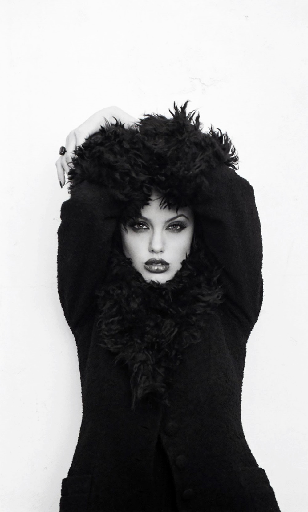 당시 안젤리나 졸리는 만 19세였는데요. 안젤리나 졸리가 처음으로 주연을 맡은 영화 <해커스>의 개봉을 앞두고 있는 상황이었습니다. 이 사진은 안젤리나 졸리가 왜 사람들의 사랑을 받았는지 잘 보여주고 있는데요. 비교적 신인이었던 안젤리나 졸리는 자신을 표현하는데 두려워하지 않았고, 당당하고 도발적인 포즈와 표정으로 시선을 사로잡고 있습니다.