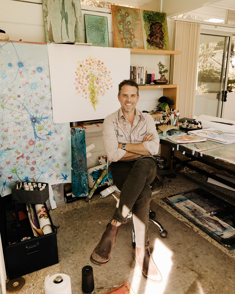 사실 헌터 바이든은 지금까지 로비스트로 활동해왔는데요. 이제 모든 일을 그만두고 '전업 아티스트'로서 새로운 삶을 살아갈 것이라고 밝혔습니다. 이에 로스앤젤레스에 있는 차고를 자신의 작업실로 바꿨다고 하네요. 바이든은 한 인터뷰를 통해 자신의 작품이 어떻게 완성될 지에 대해 완전히 머릿속으로 그리지는 않는다며 작품을 만드는 과정에 대해 설명하기도 했습니다.