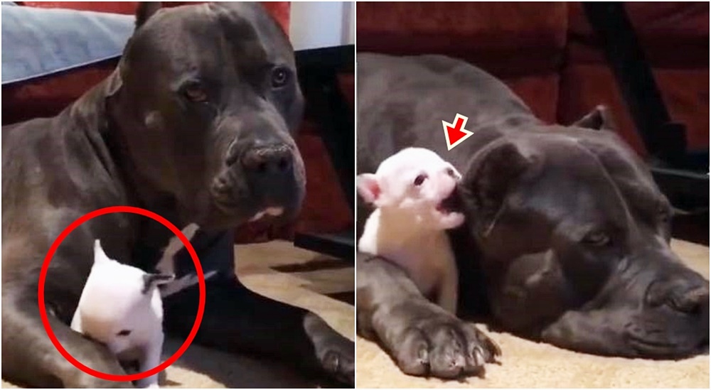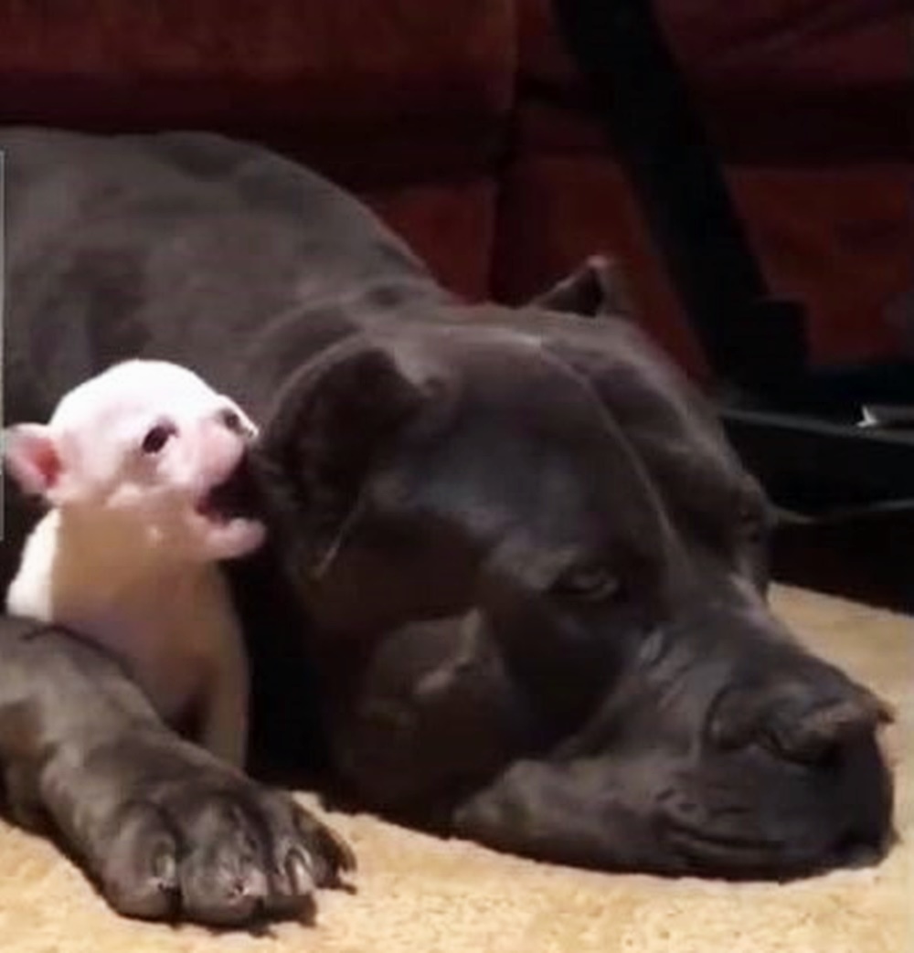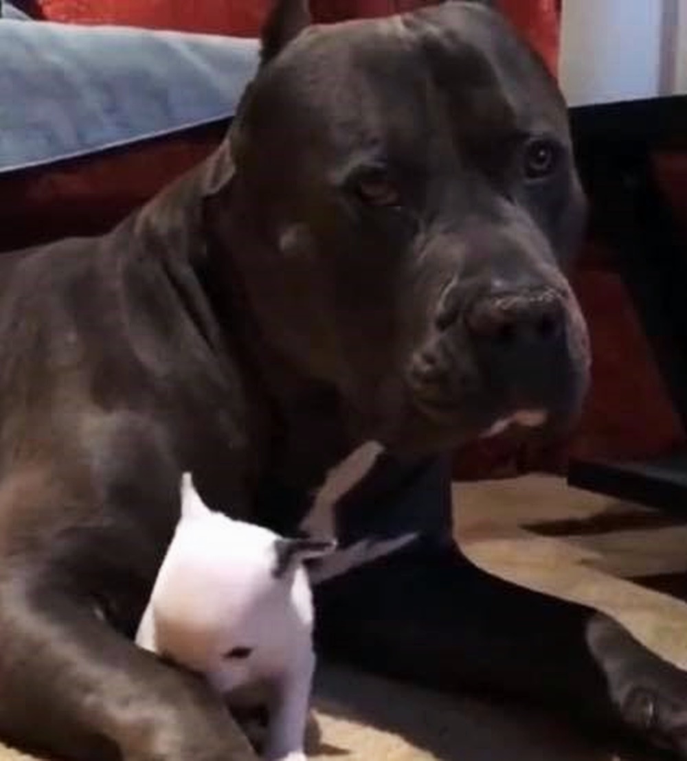 그러나 얼마 전 이런 이미지를 불식시킨 한 영상이 공개되며 큰 화제가 되고 있습니다. 바로 아기 강아지를 돌보는 핏불의 영상이었습니다. 영상 속에는 성견 핏불 한 마리와 아기 강아지 한 마리가 등장하는데요. 성견 핏불은 가만히 누워 아기 강아지를 감싸고 있으며, 아기 강아지가 옆에서 어떤 행동을 하든 놀라운 참을성으로 이 아기 강아지를 돌보고 있습니다.