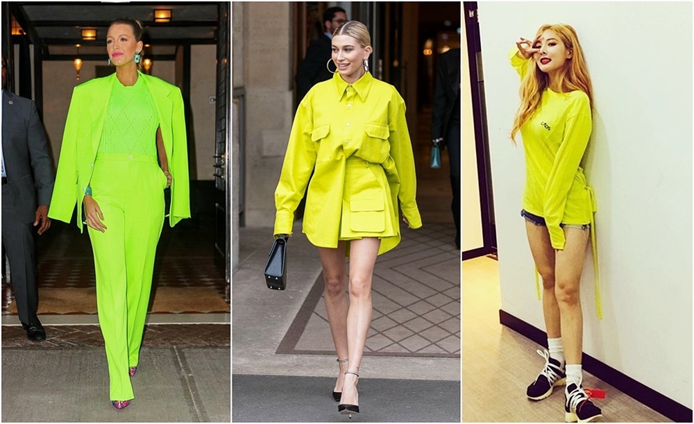 날씨가 더워질수록 더욱 밝고 쨍한 색감이 눈에 더 들어옵니다. 밝고 쨍한 색감의 최고봉은 뭐니 뭐니 해도 '형광펜 색상' 네온 컬러가 아닐까 생각되는데요. 특히 올해 많은 셀럽들이 네온 그린 컬러를 착용하며 컬러 트렌드를 주도하고 있습니다. 마치 학창 시절 교과서에서 중요한 부분을 눈에 띄게 형광펜으로 색칠을 해둔 것처럼 네온 컬러를 입으면 사람들의 눈에 확 띌 수 있는데요.